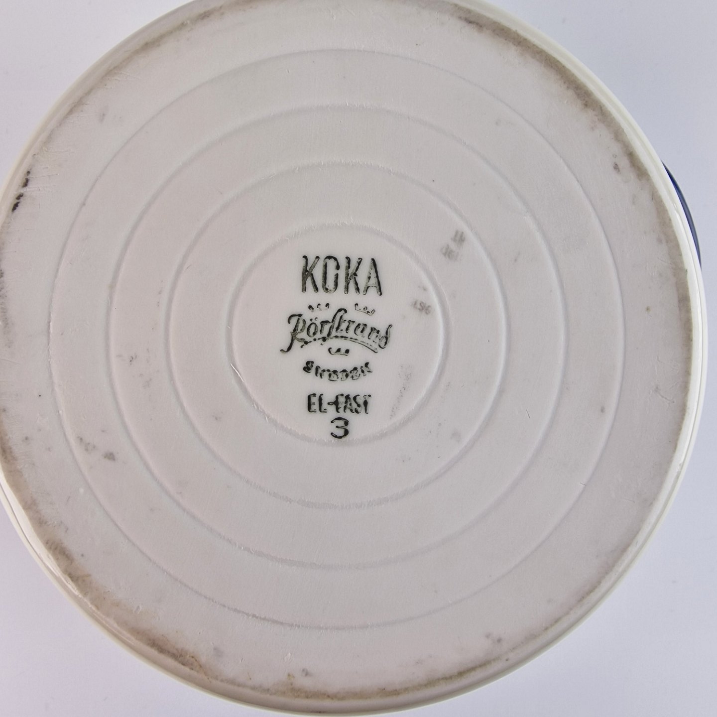 Blå Koka er af hvidt glaseret porcelæn med et bånd af mørk blå