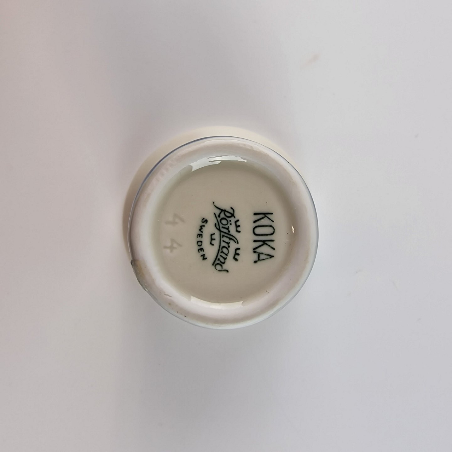 Blå Koka er af hvidt glaseret porcelæn med et bånd af mørk blå