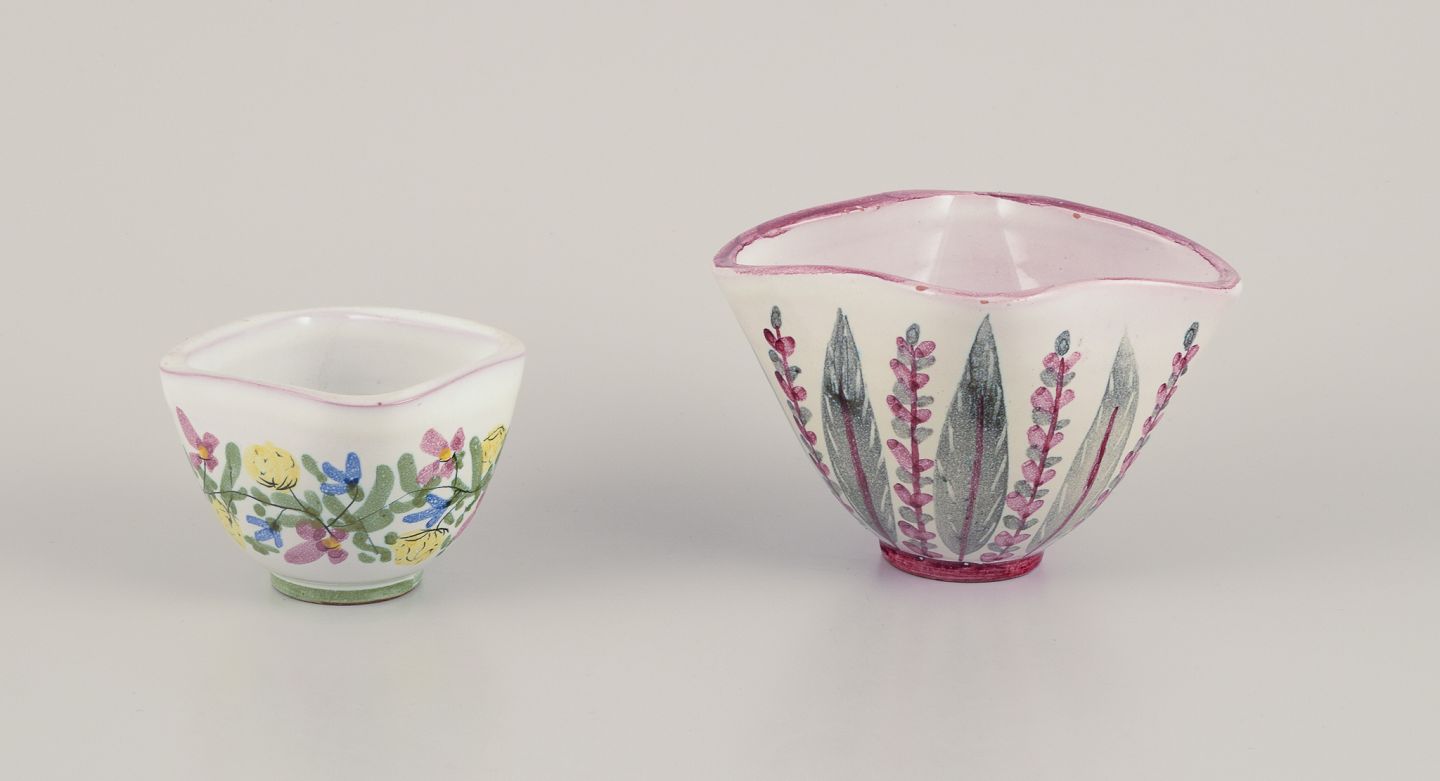 Laholm, Sverige. To små keramikskåle. Hånddekoreret.