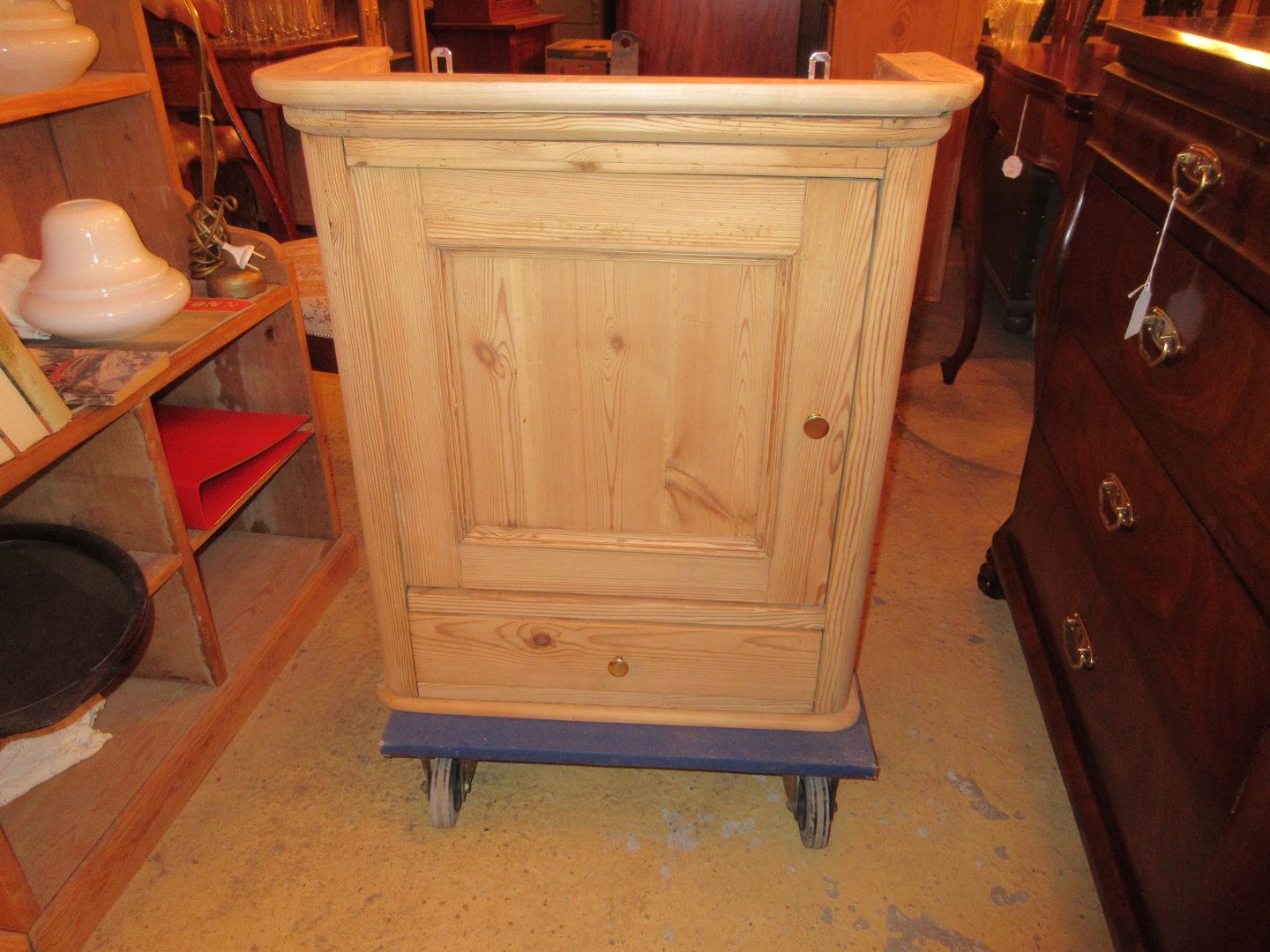 Hængeskab afsyret fyrretræ i fin stand restaureret med 1 låge 1 skuffe mål H 72 D 28 B 64 cm