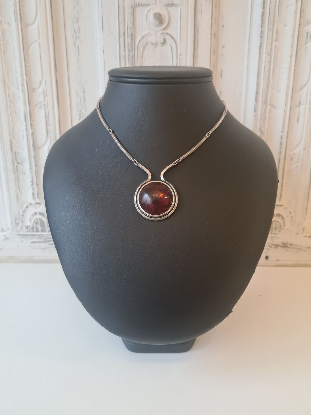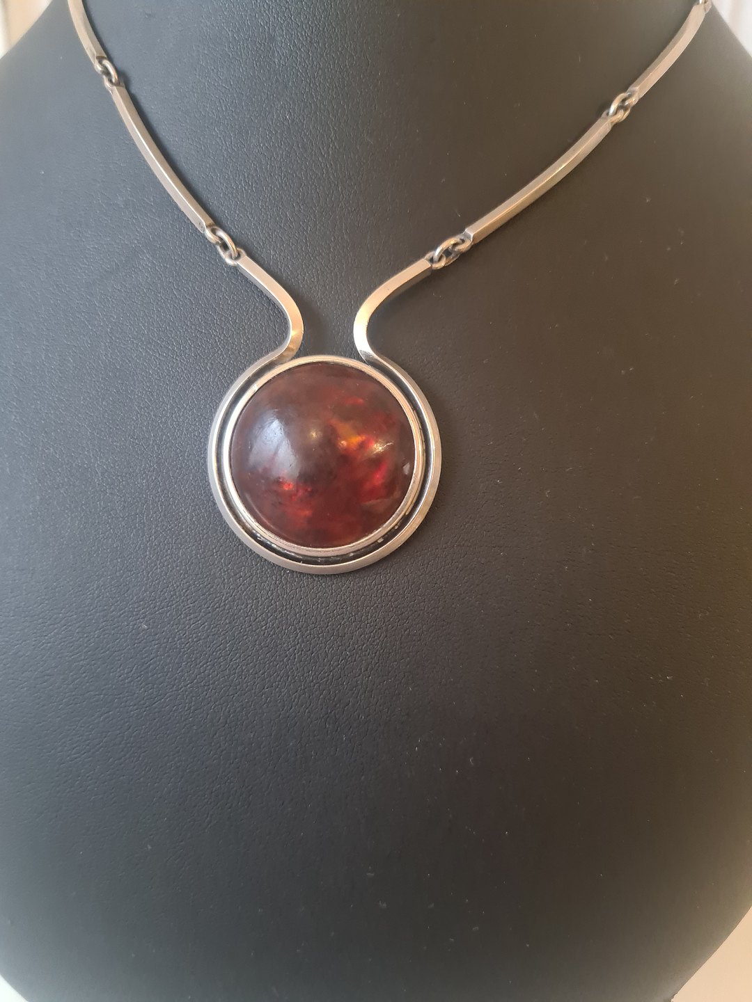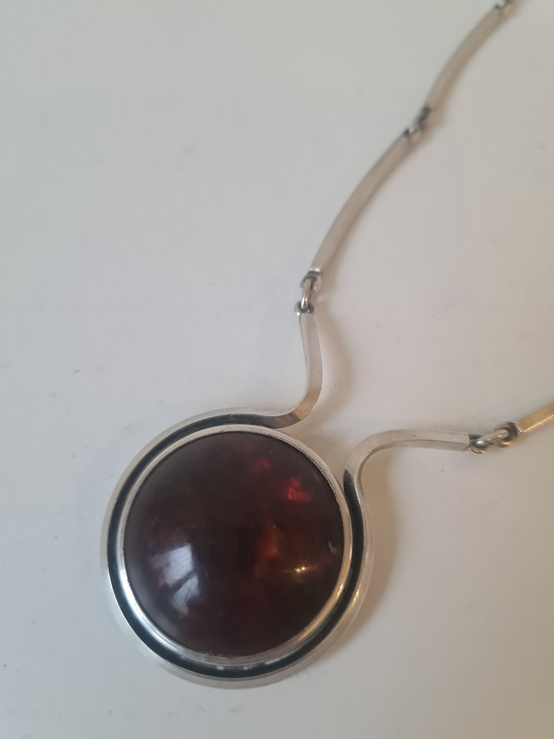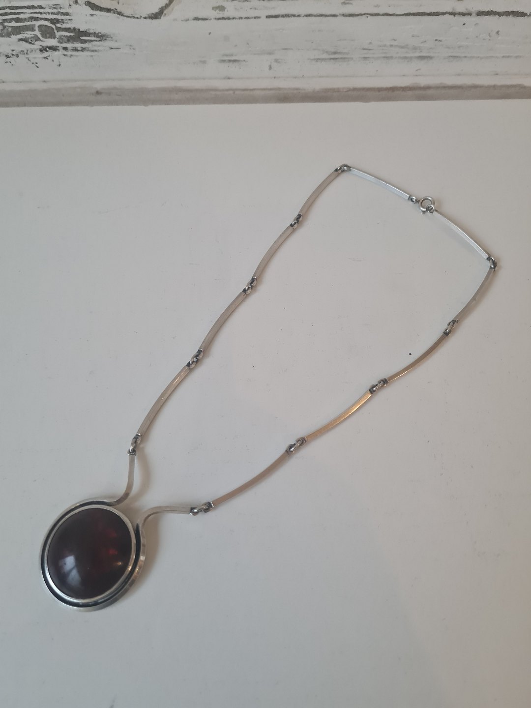 N.E.From vintage halskæde i sterlingsølv med ravperle