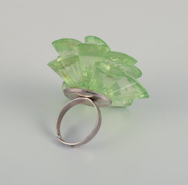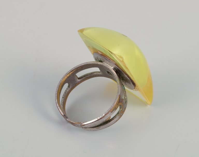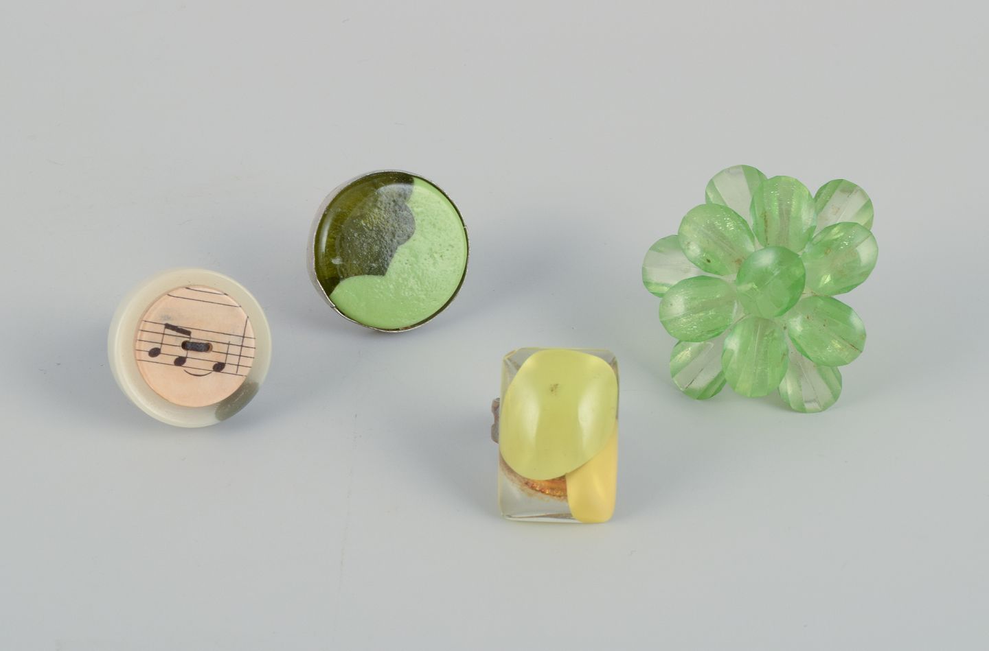 Fransk smykkekunstner. Fire designerringe i metal og plast.