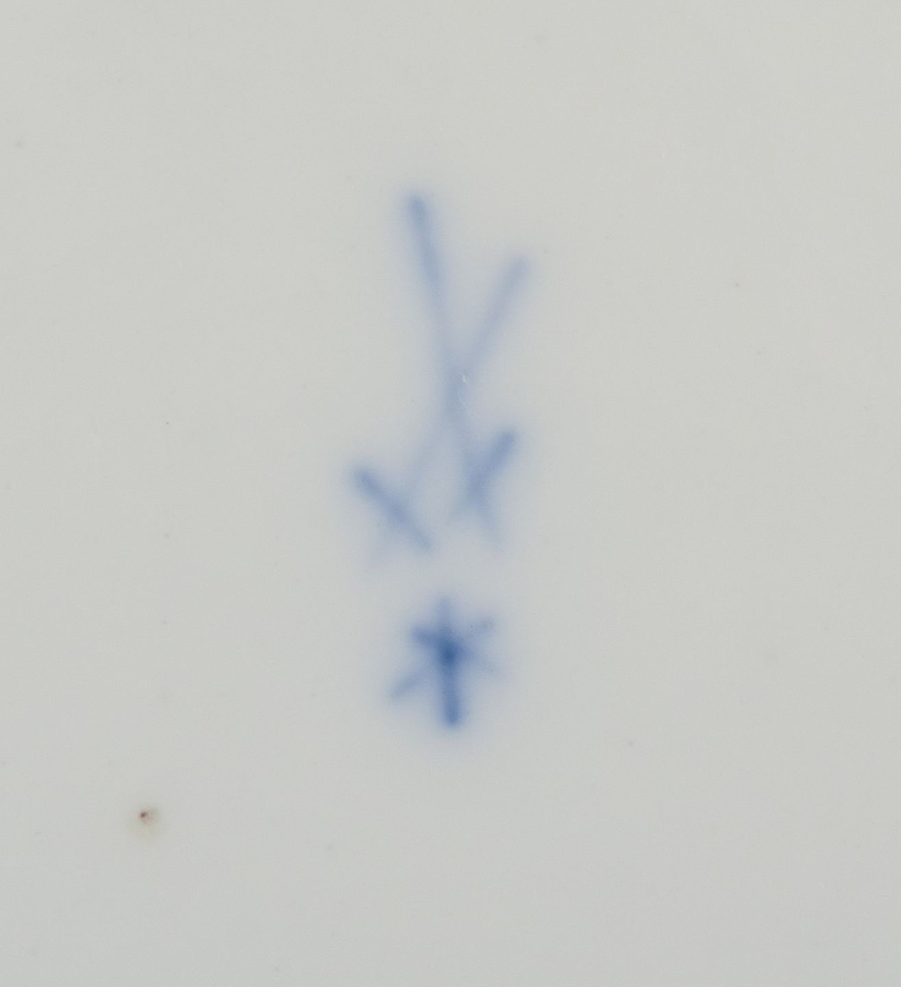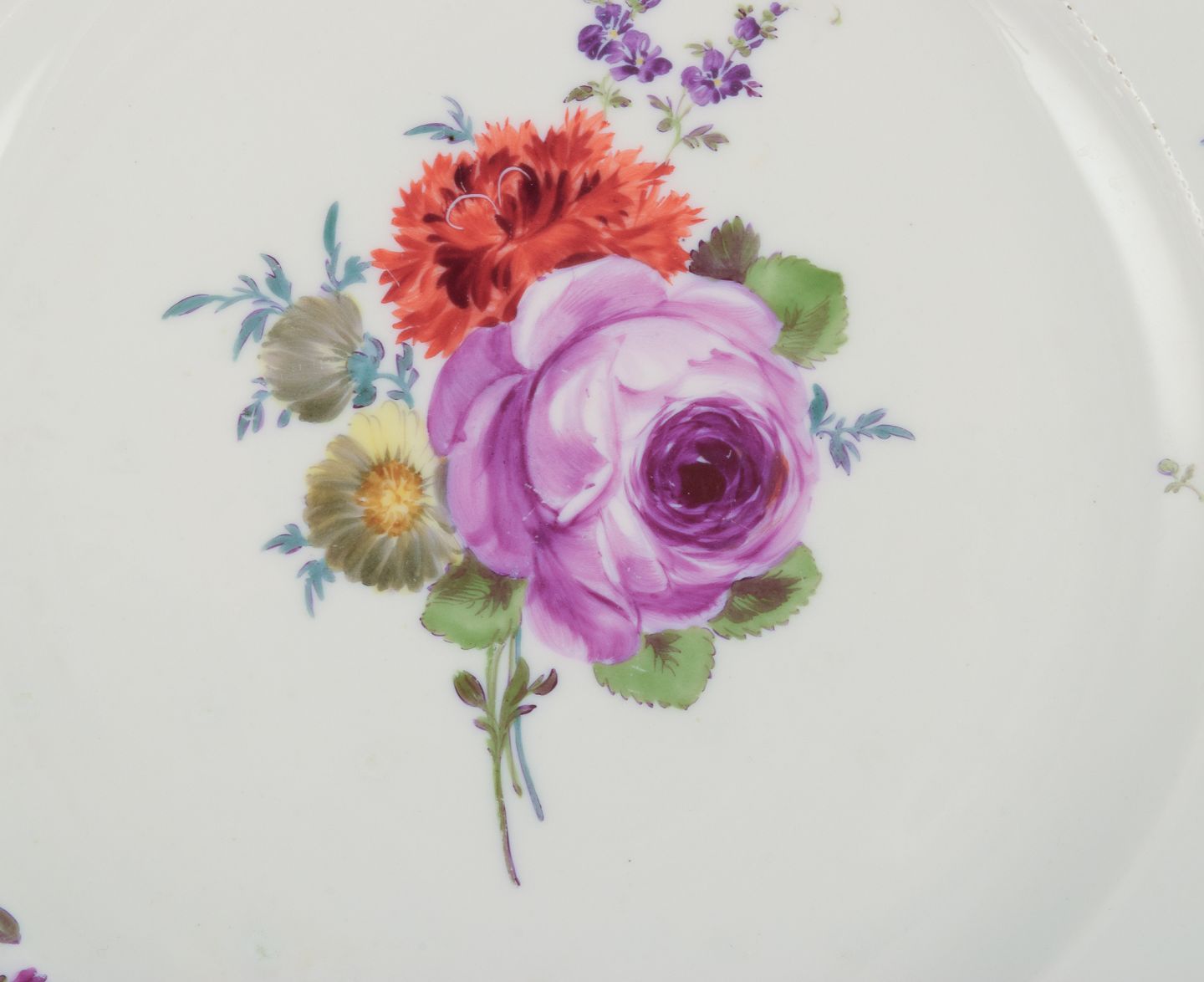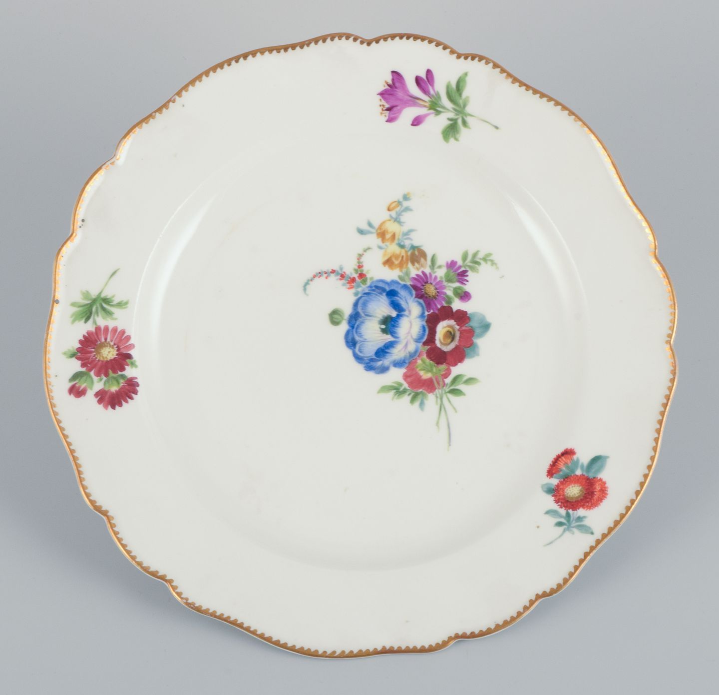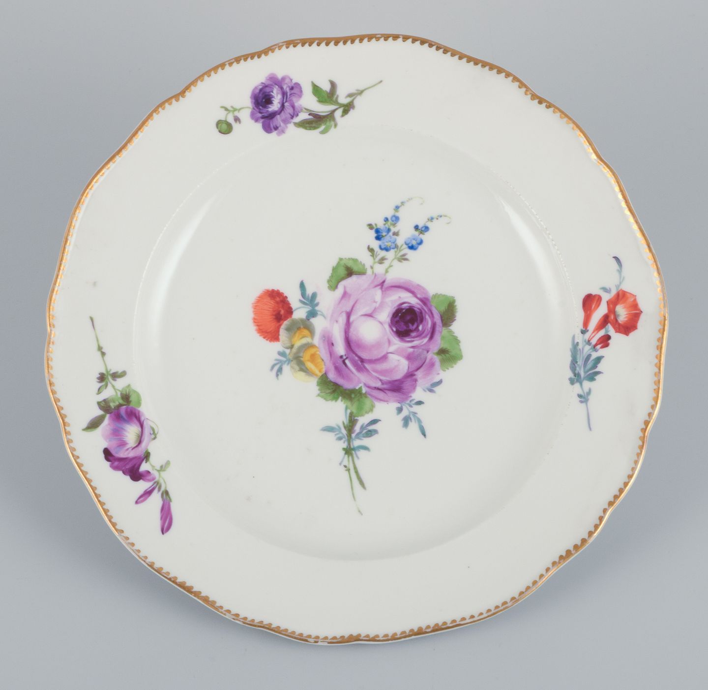 Meissen, Tyskland. Et sæt på seks antikke middagstallerkner i porcelæn. Håndmalet med polykrome blomstermotiver.