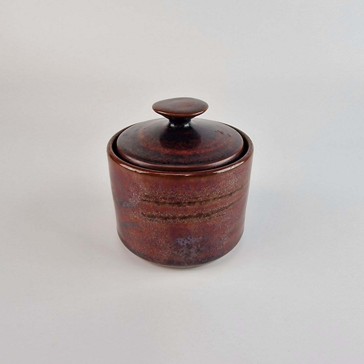Skål med låg i stentøj fra stellet Thule. Nr. 49