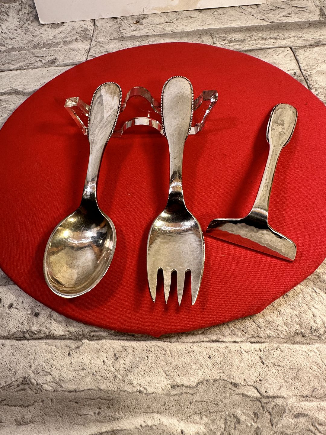 Children's pushers. Children's box. Children's fork.