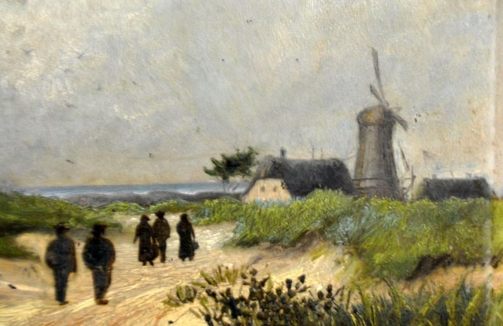 Herschend, Oscar (1853 - 1891) Danmark: Folk på en vej i klitterne. Usigneret. Olie på skiffer. 28 x 28,5 cm.