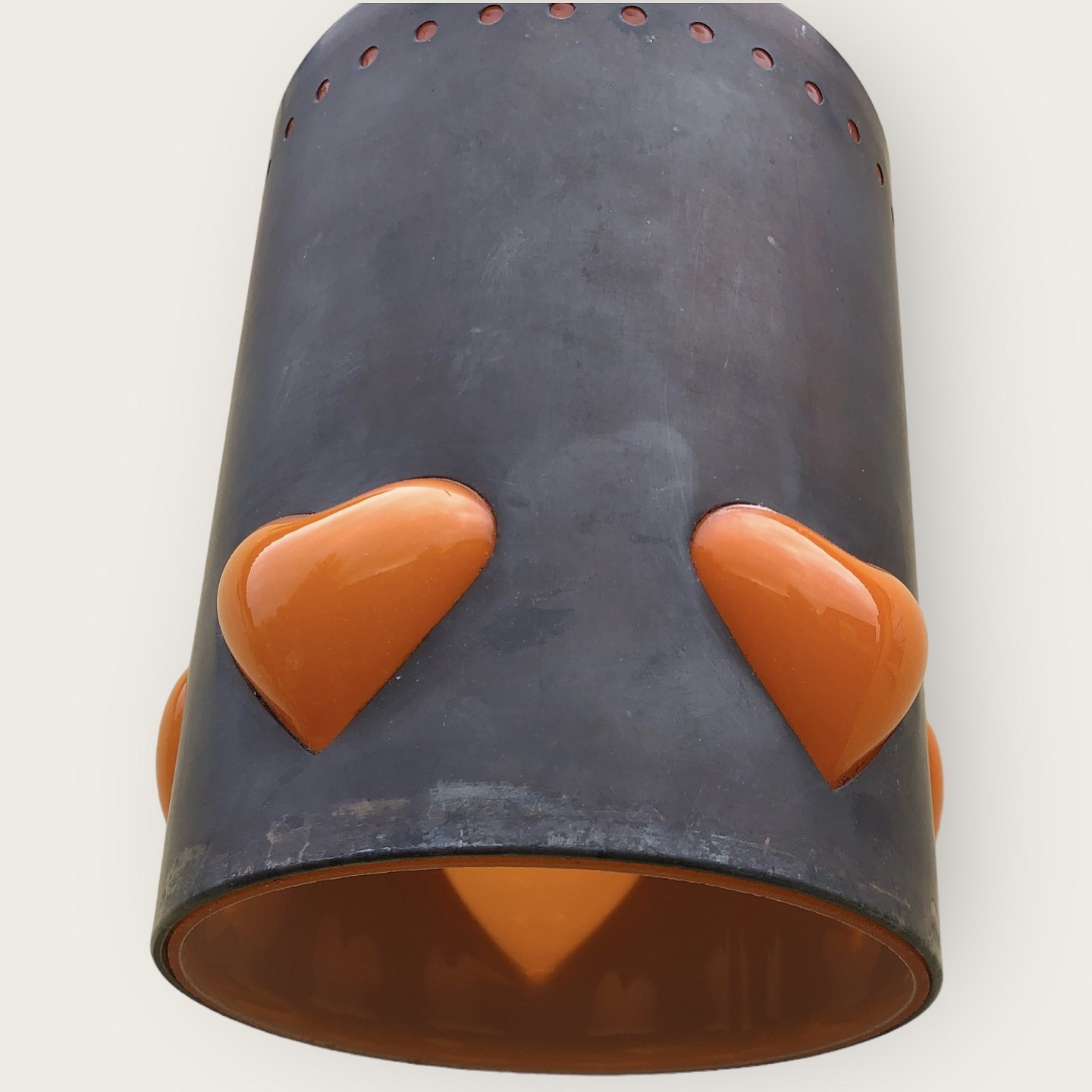 Retro lamp with hearts. Orange glass and metal. Nice used condition. Height 20 cm.