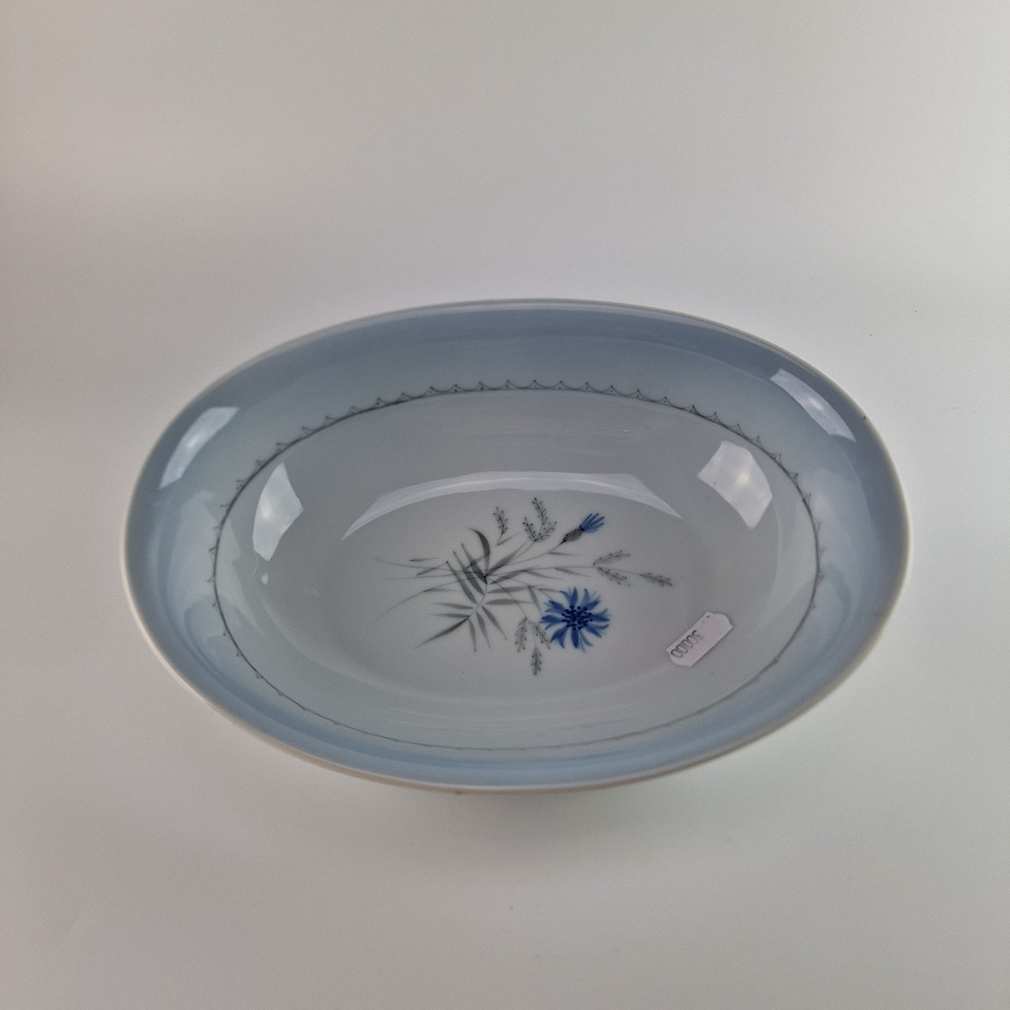 Demeter er af hvidt porcelæn med graduering af blå i kanten og med motiv af kornblomst