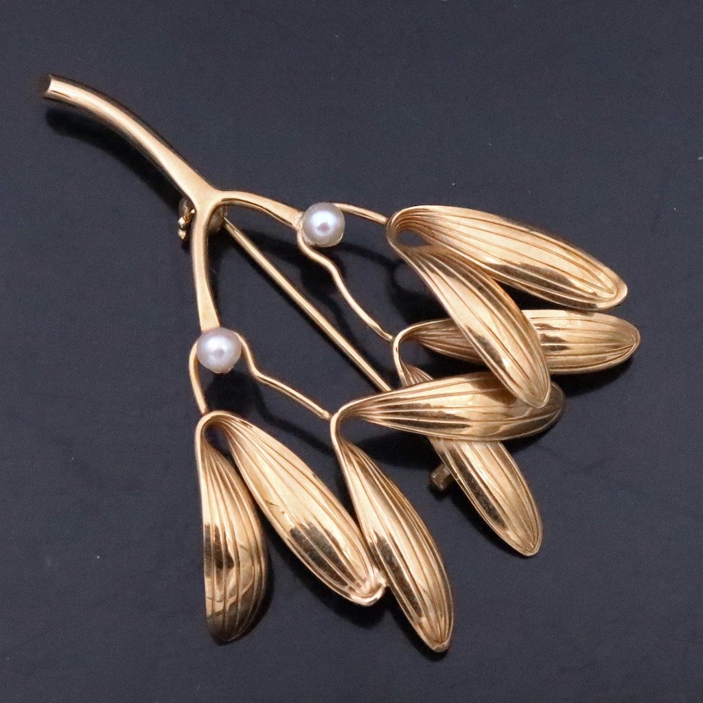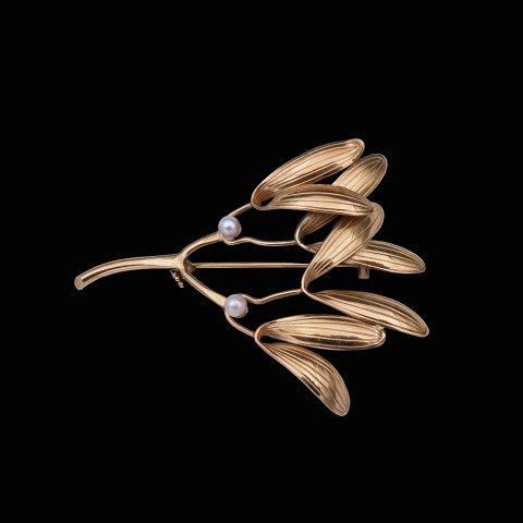 Gertrud Engel for Anton Michelsen. Broche i 14k guld med perler.