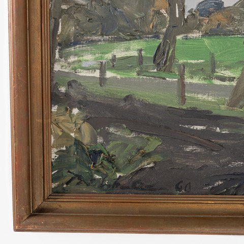Olie på lærred. Landskab i bemalet ramme. Signeret.