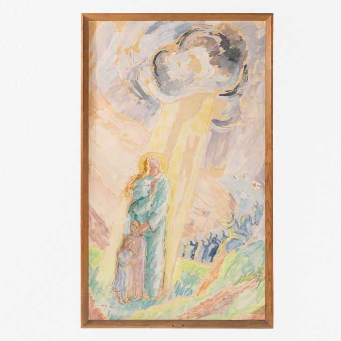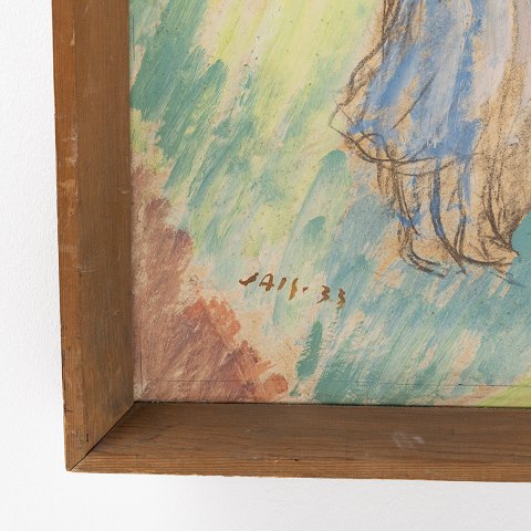 Framed painting with religious motif. Exhibited at Den Frie. 1933. Signed.