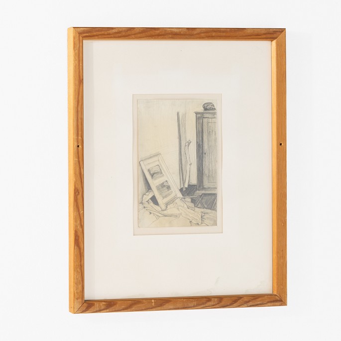 Drawing with white background in a wooden frame.