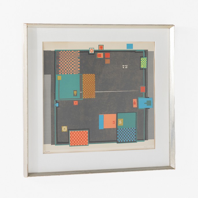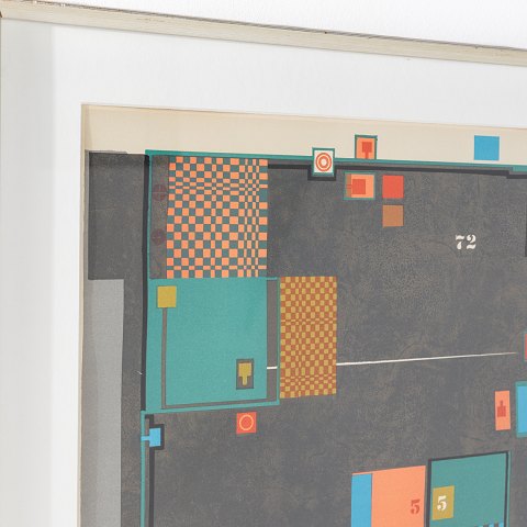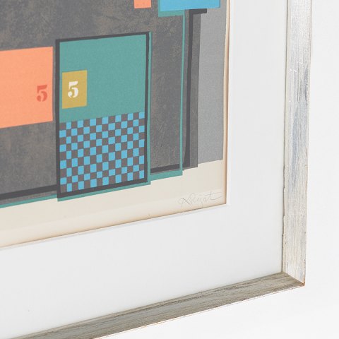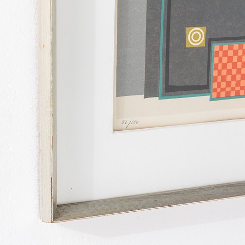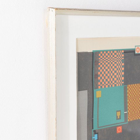 Litografi med titel 'Casino'. Nr. 56/100. Signeret. Sølvramme.