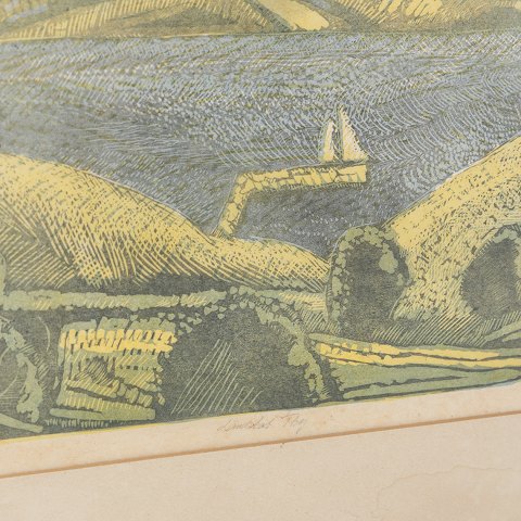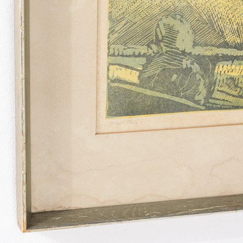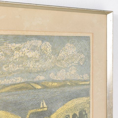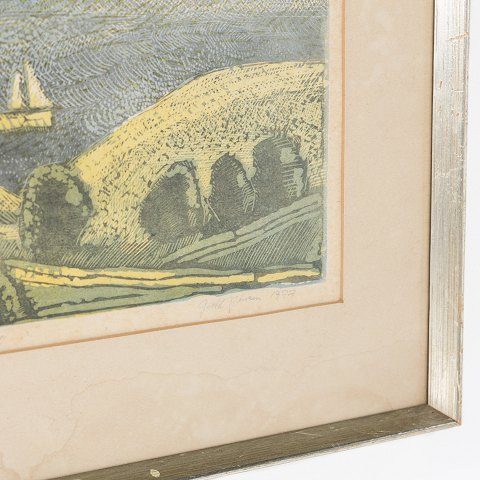 Maleri. Landskabet Thy med sølvramme fra 1977. Signeret.