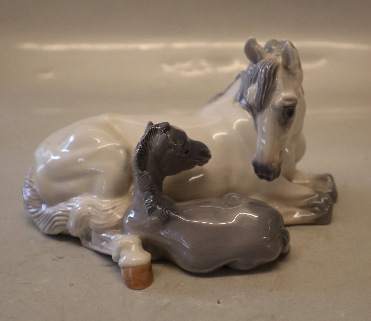 Royal Copenhagen 4698 RC Mare and foal JG 10 x 19 cm. In mint and nice condition Horse Design Jeanne Grut