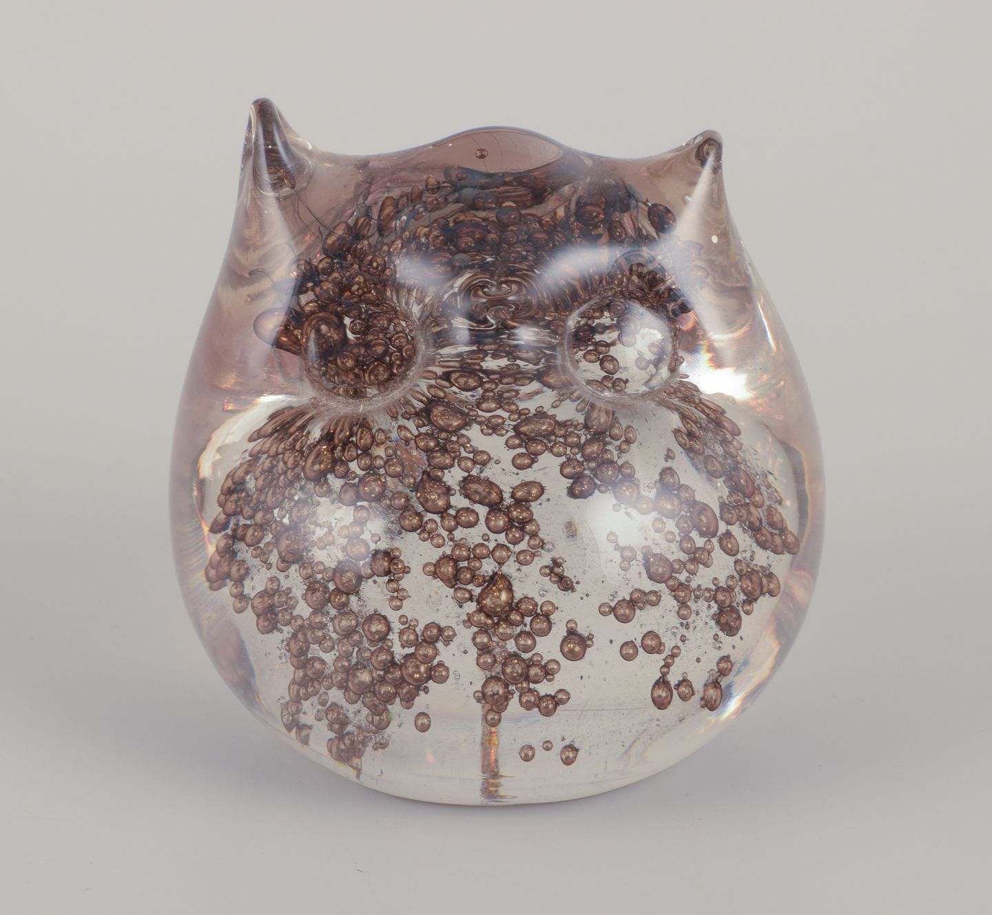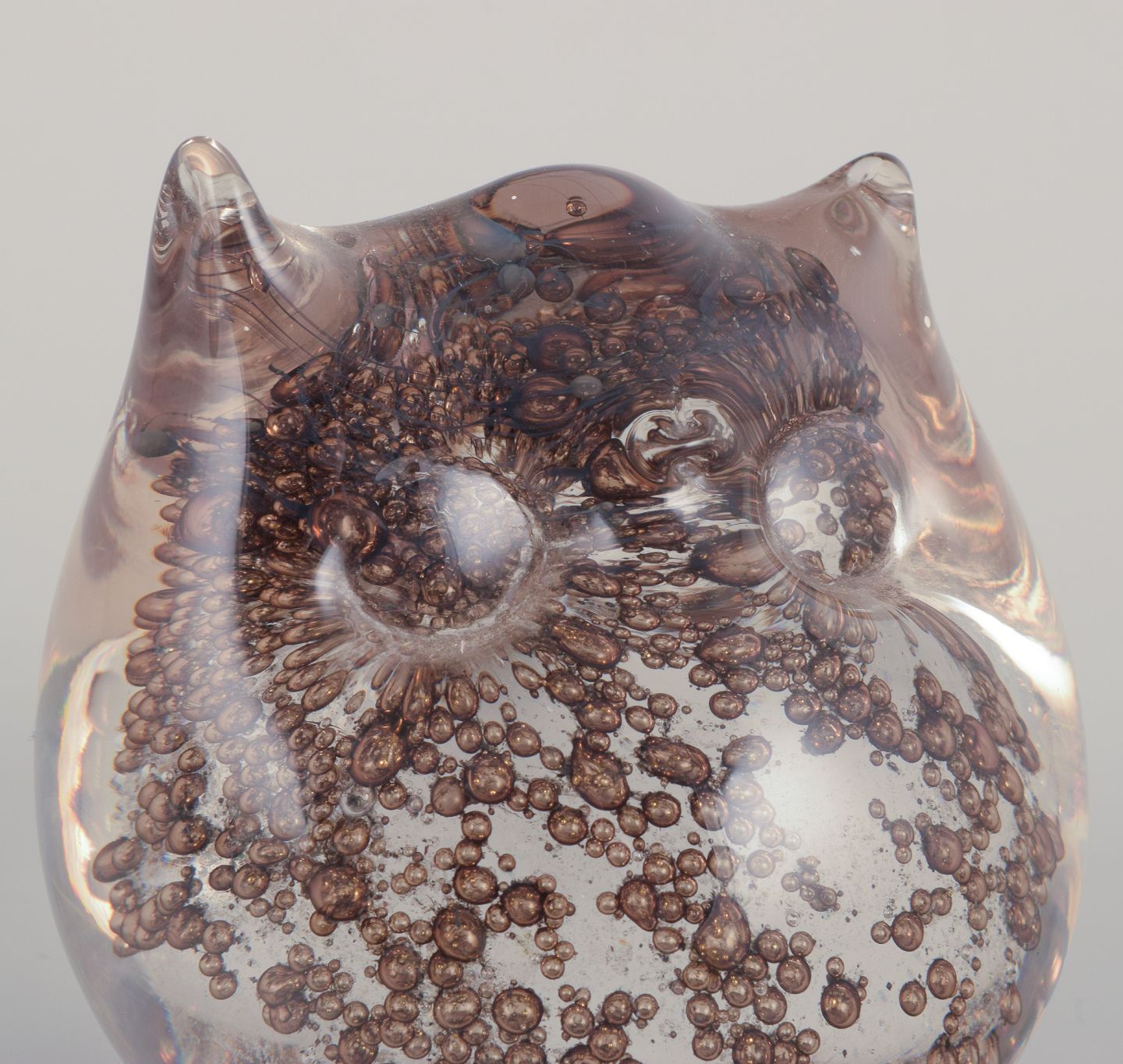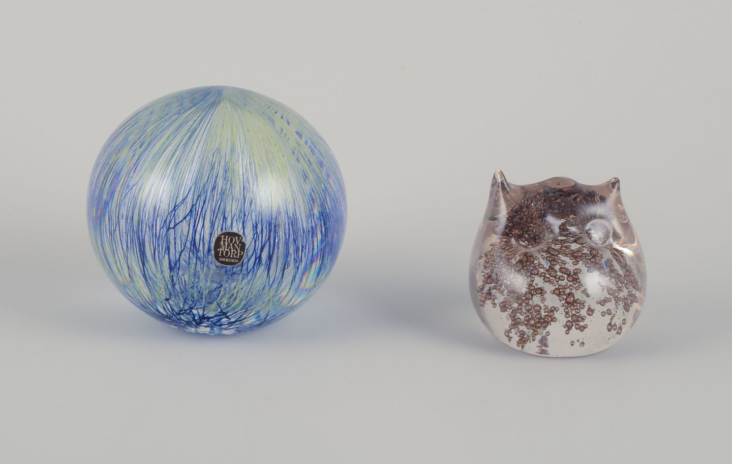 E. Söderberg for Hovmantorp, svensk glaskunstner, og Muurla, Finland. To skulpturer i kunstglas. Ugle og kugleformet skulptur med abstrakt motiv.
