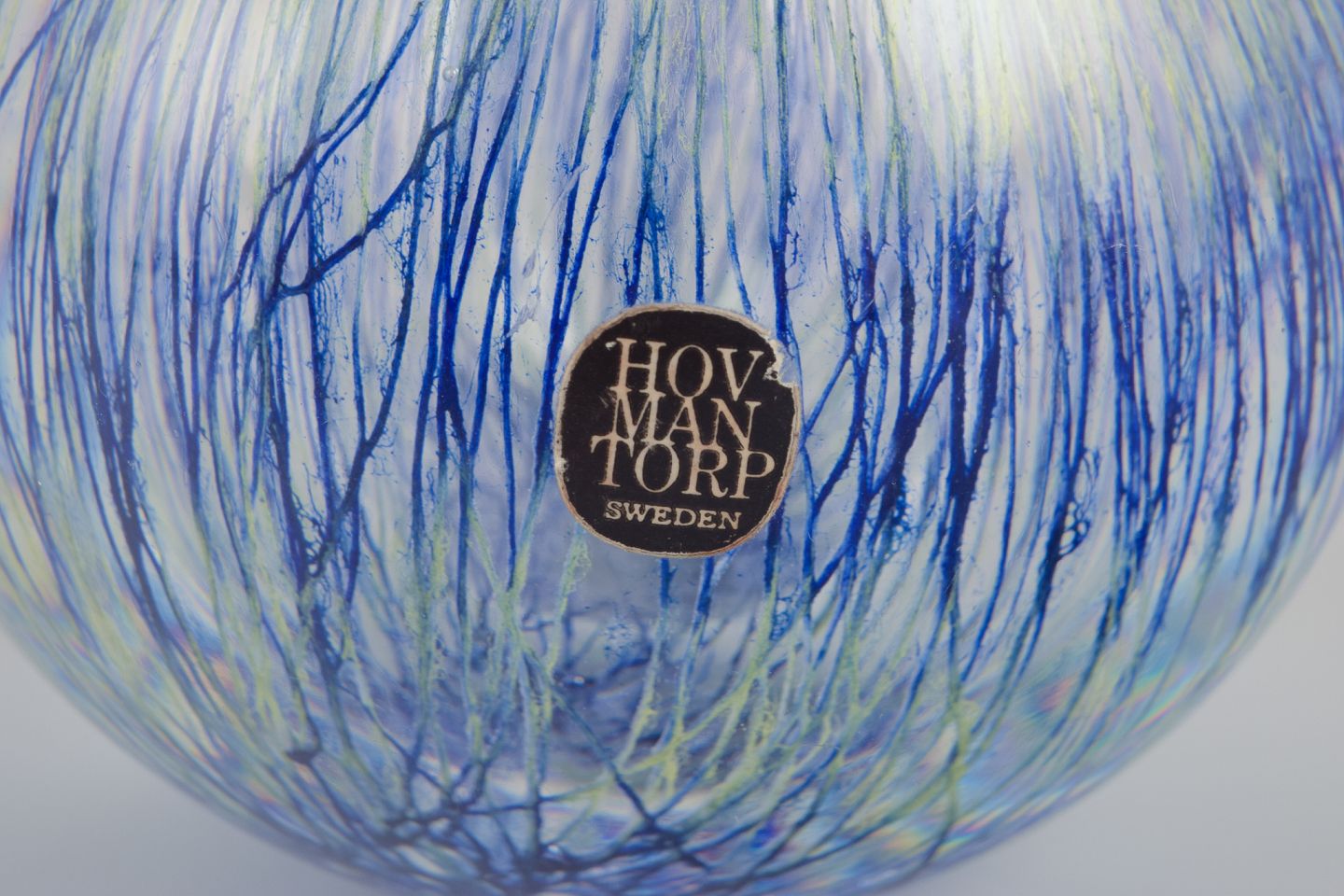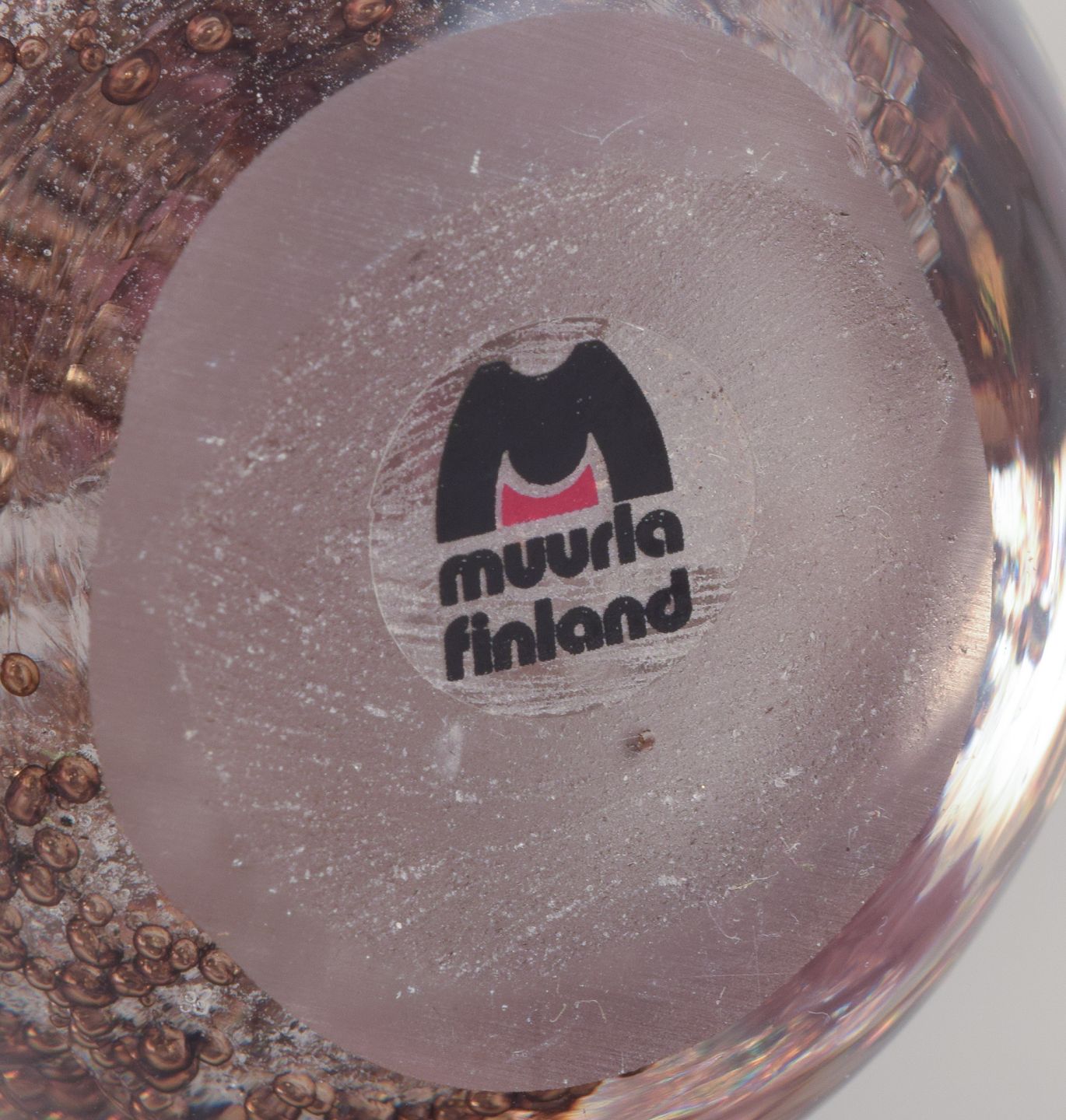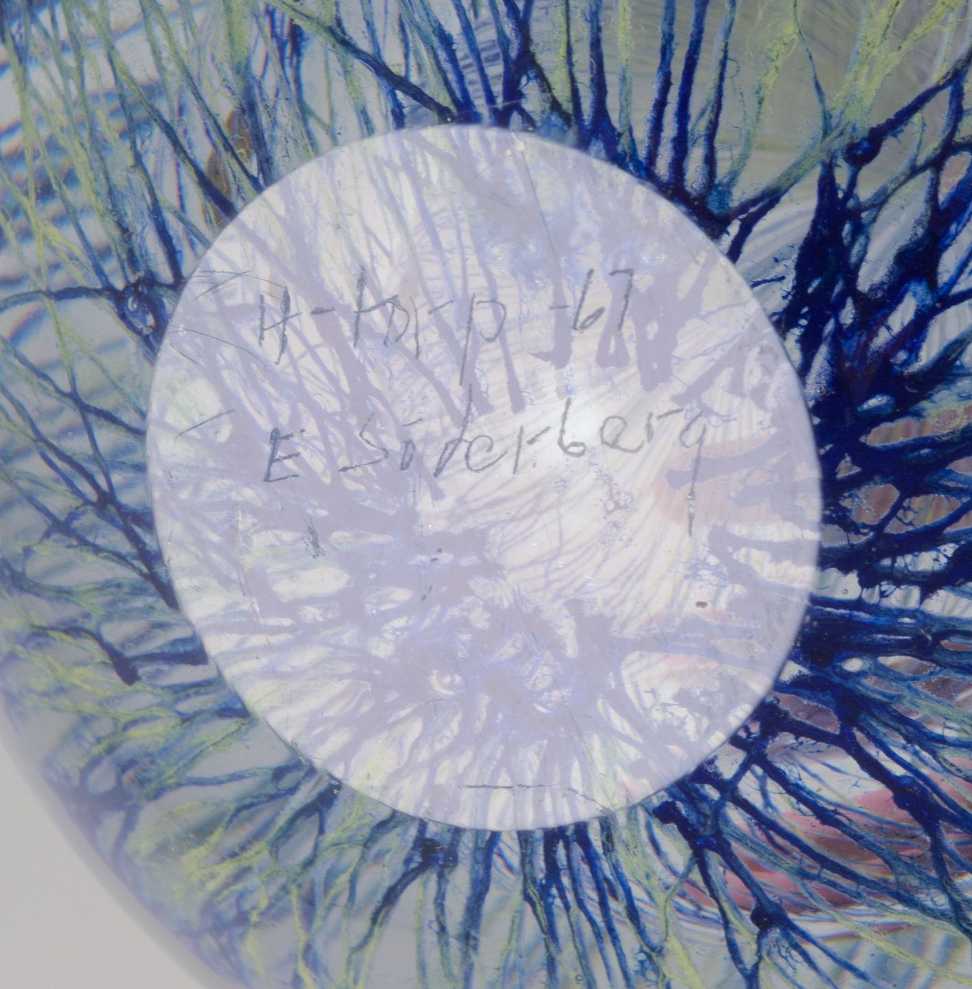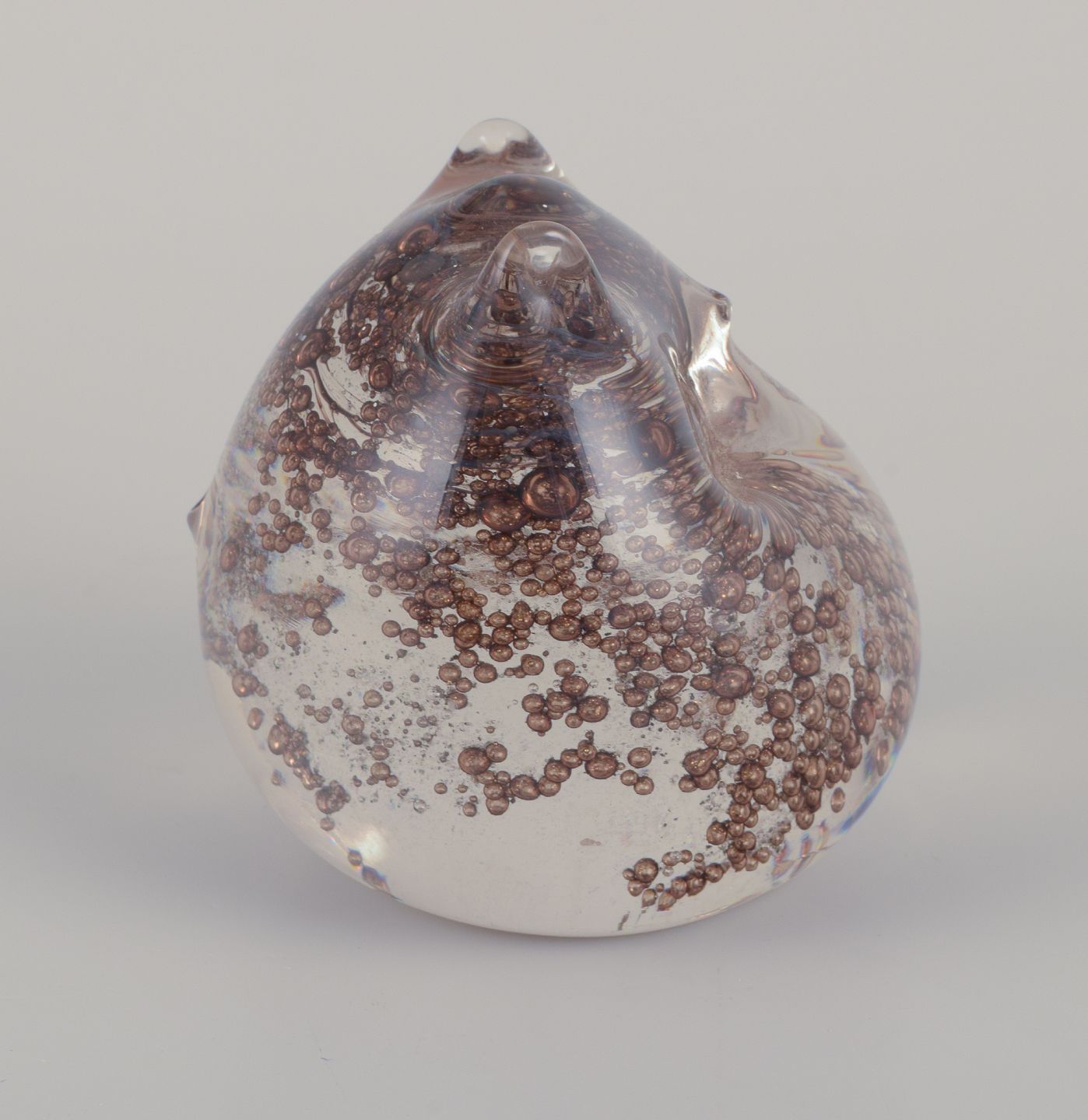 E. Söderberg for Hovmantorp, svensk glaskunstner, og Muurla, Finland. To skulpturer i kunstglas. Ugle og kugleformet skulptur med abstrakt motiv.