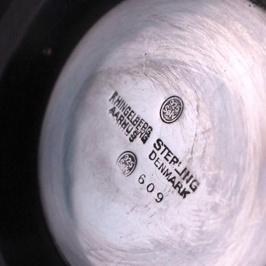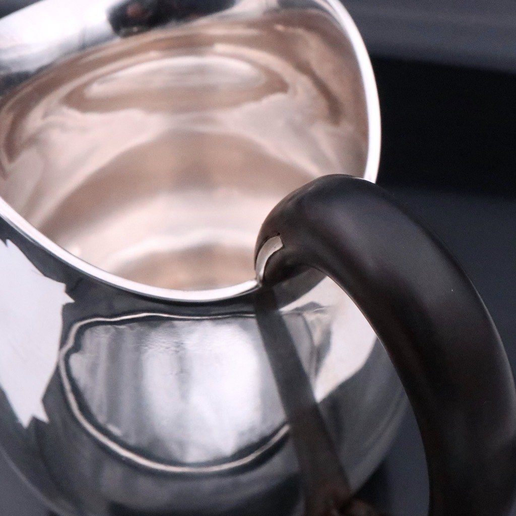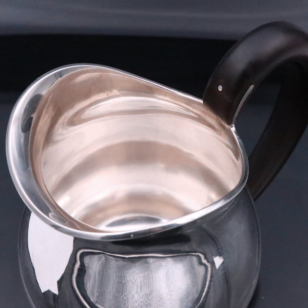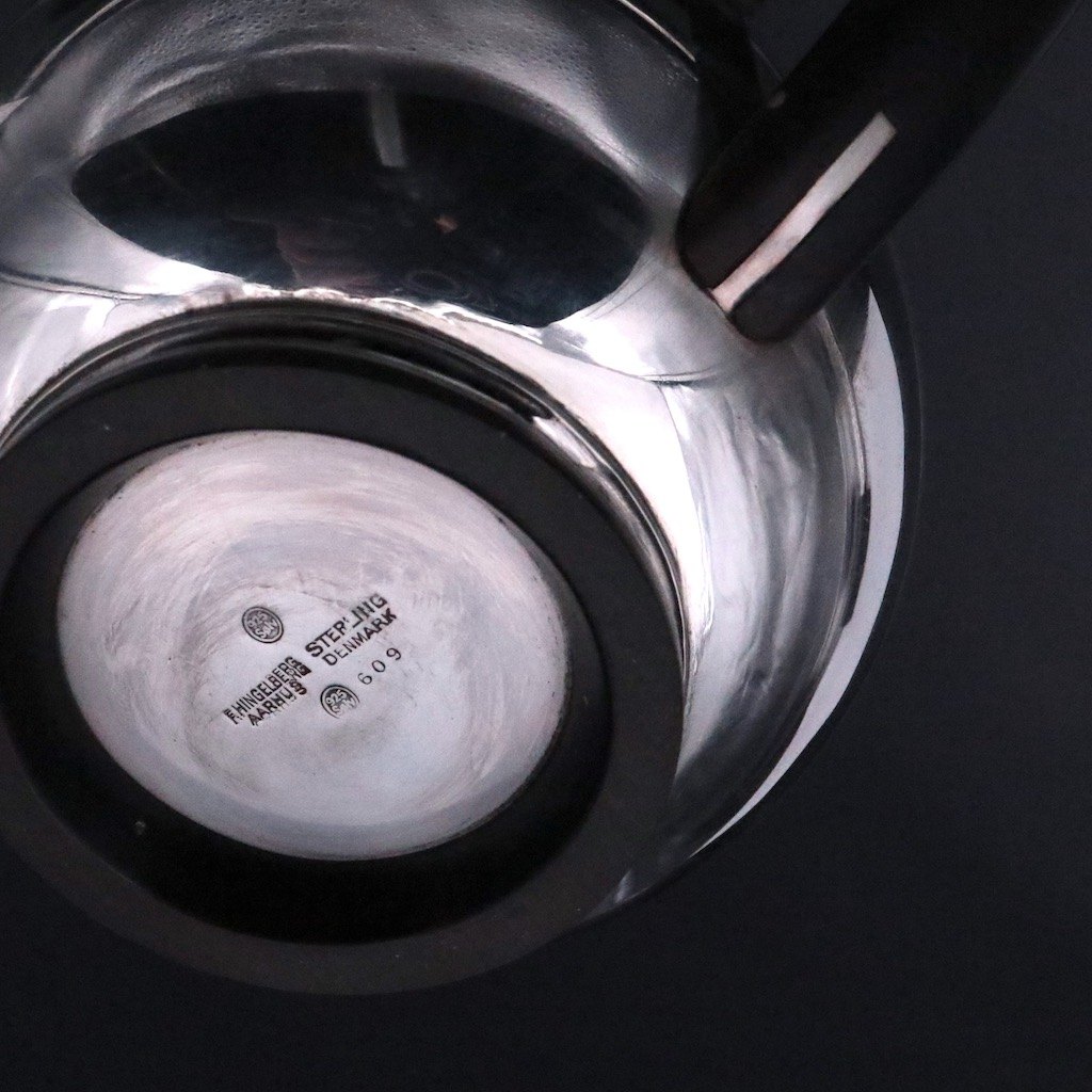 Svend Weihrauch 1899-1962 for F. Hingelberg. Kande i sterling sølv med greb i ebonit.