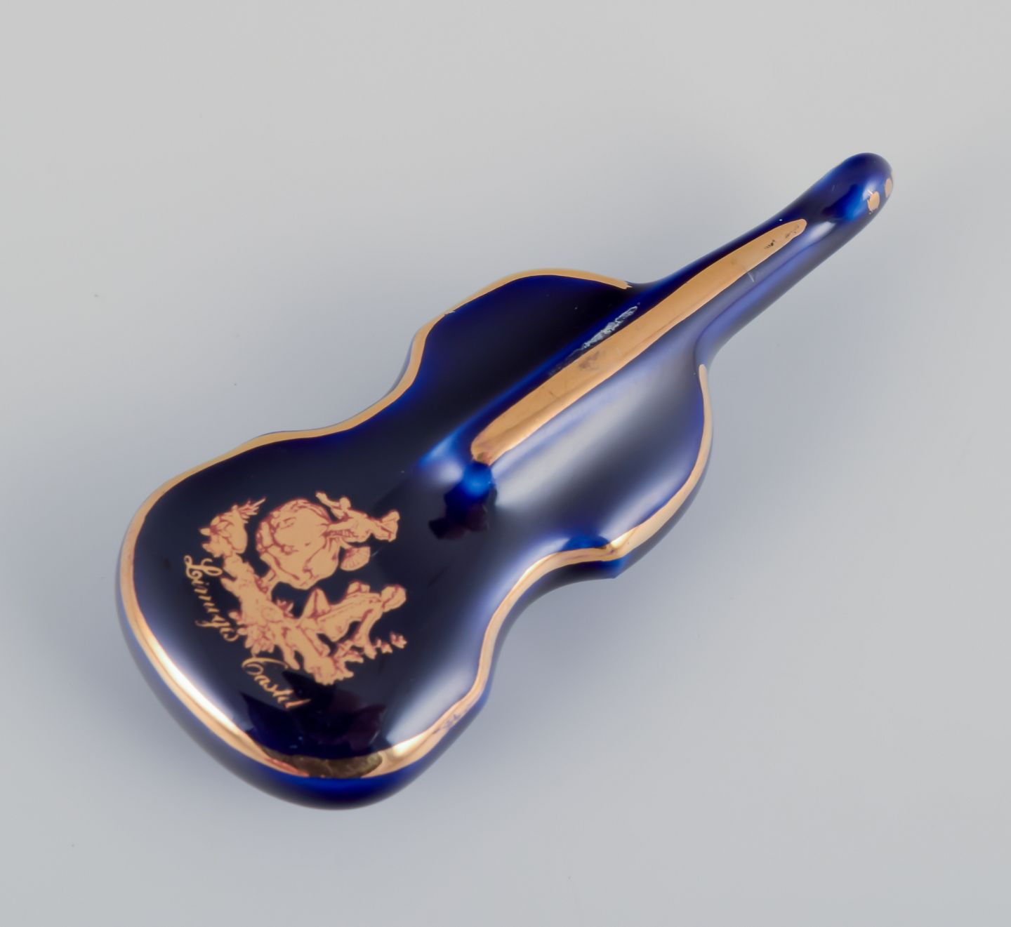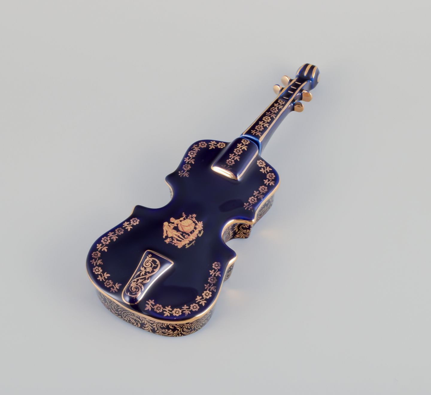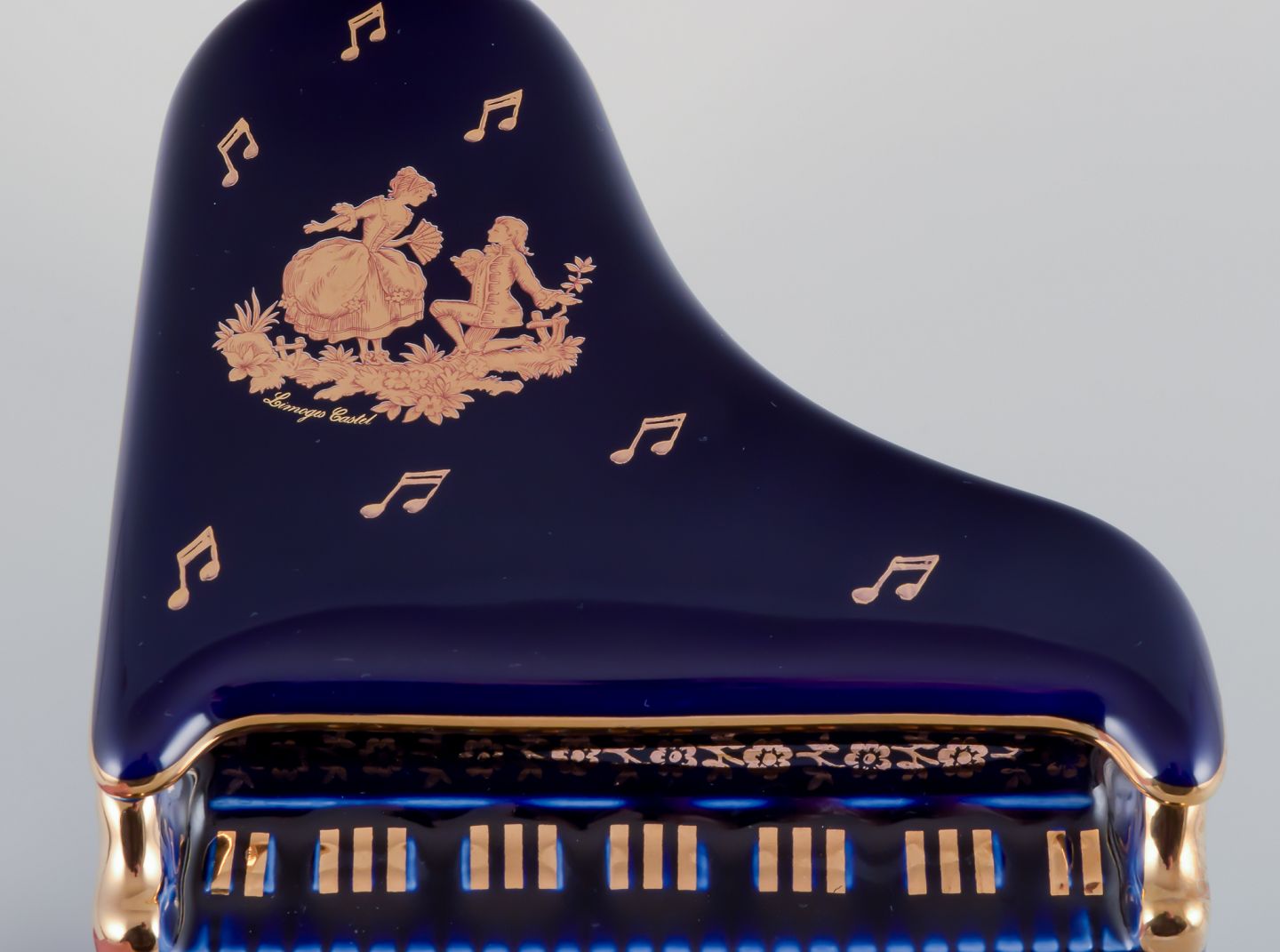 Limoges, Frankrig. Fire instrumenter i porcelæn. Dekoreret i 22-karat bladguld. Smuk kongeblå glasur. Scène galante.