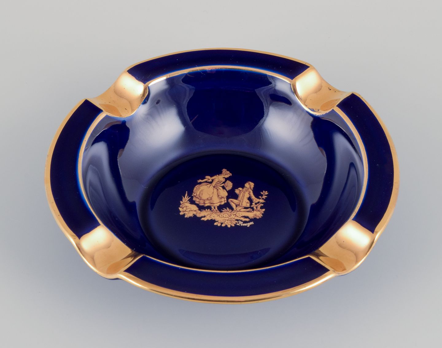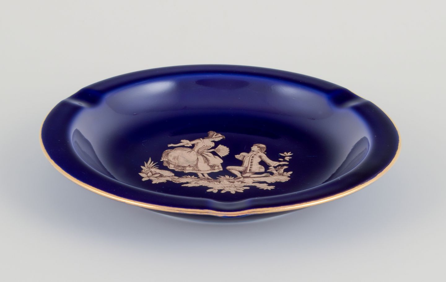 Limoges, Frankrig. To små skåle i porcelæn. Dekoreret i 22-karat bladguld. Smuk kongeblå glasur. Scène galante.