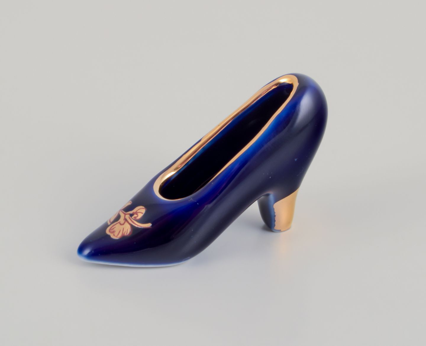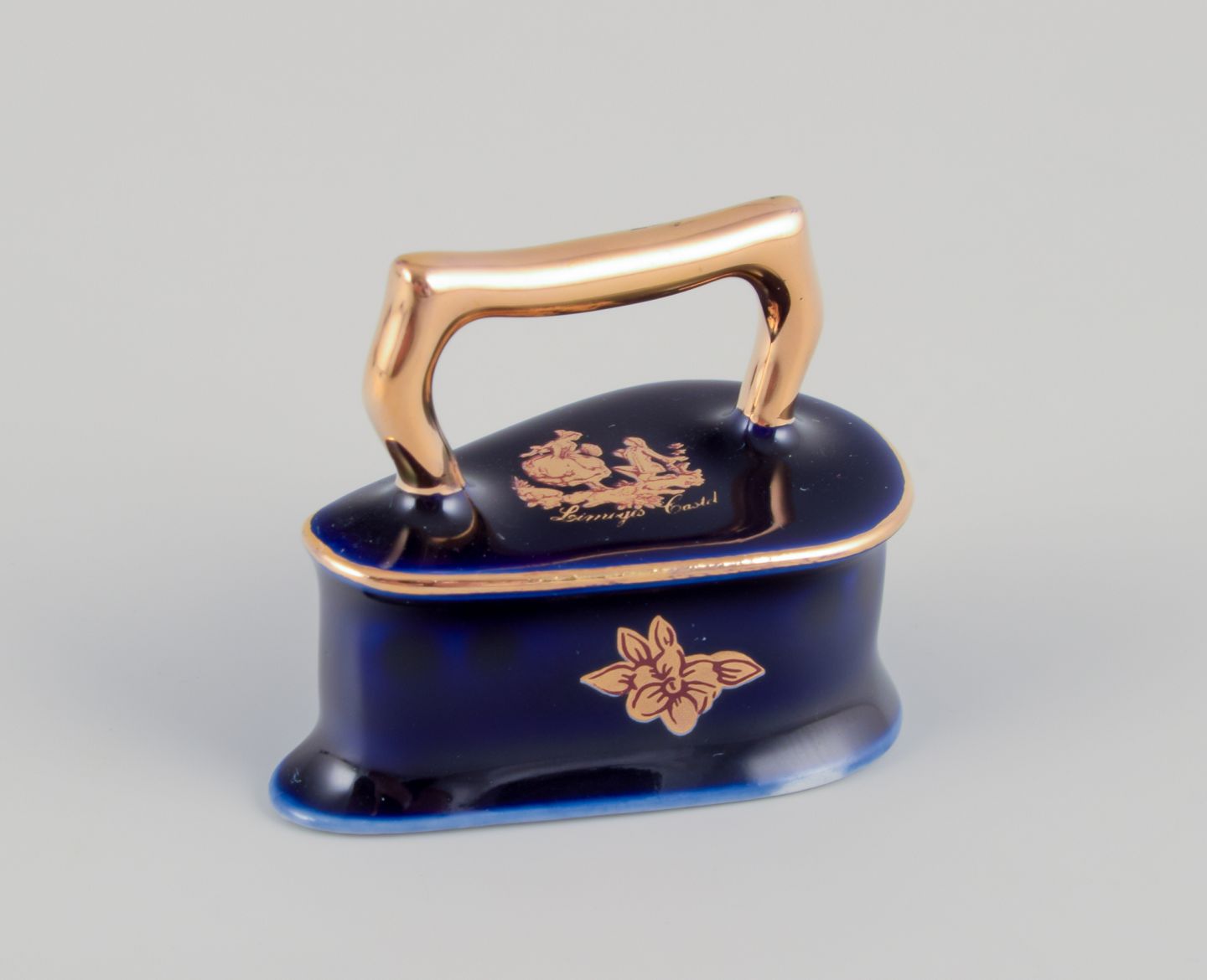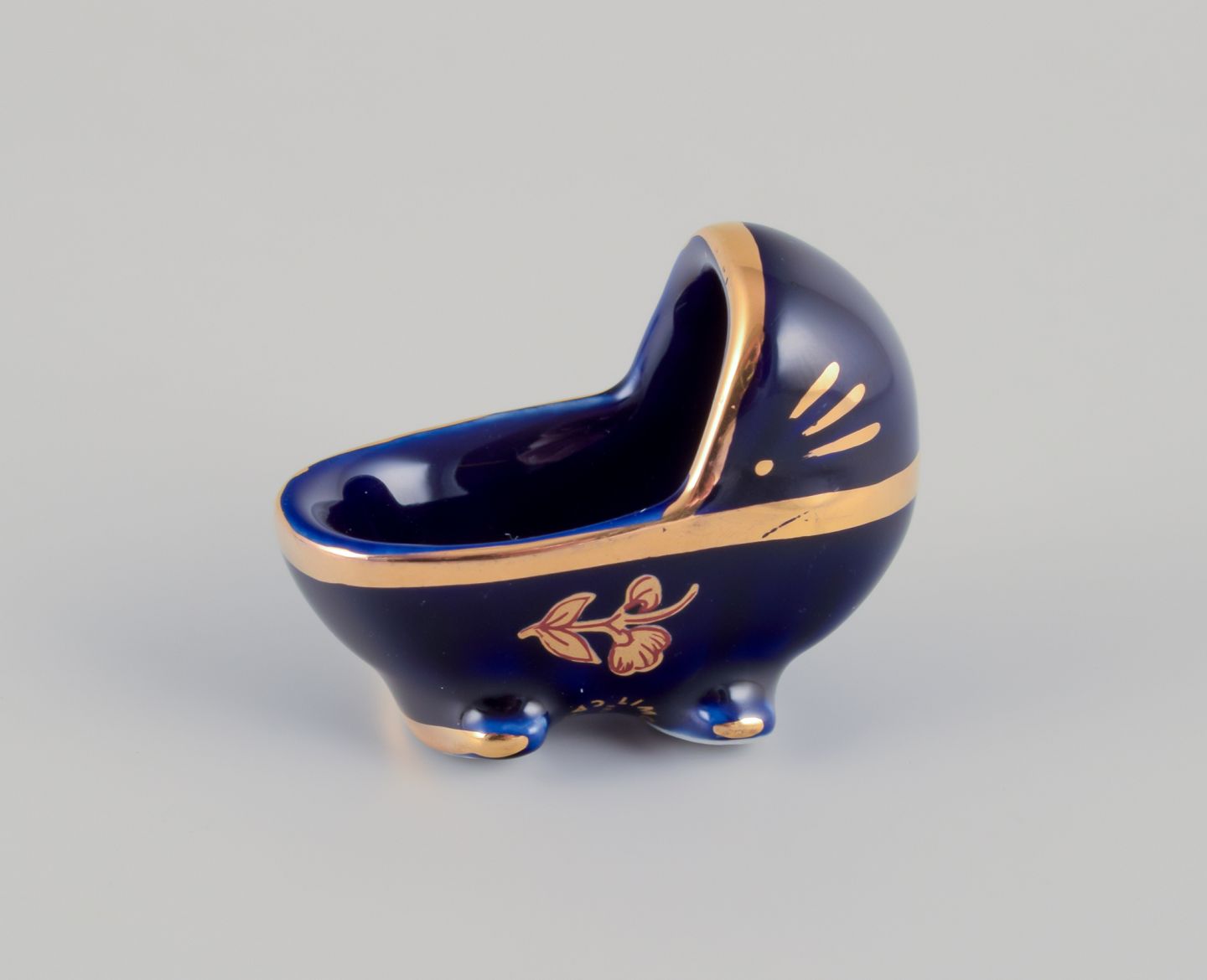Limoges, Frankrig. Syv dele porcelæn. Miniaturer. Dekoreret i 22-karat bladguld. Smuk kongeblå glasur. Scène galante.