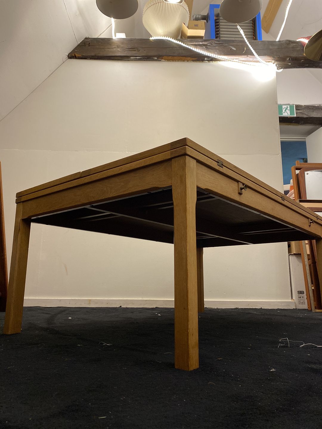Sofabord i eg med klapper. Fremstår ok pænt og velholdt uden de store brugsspor.