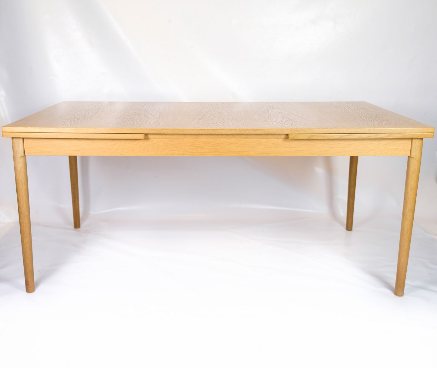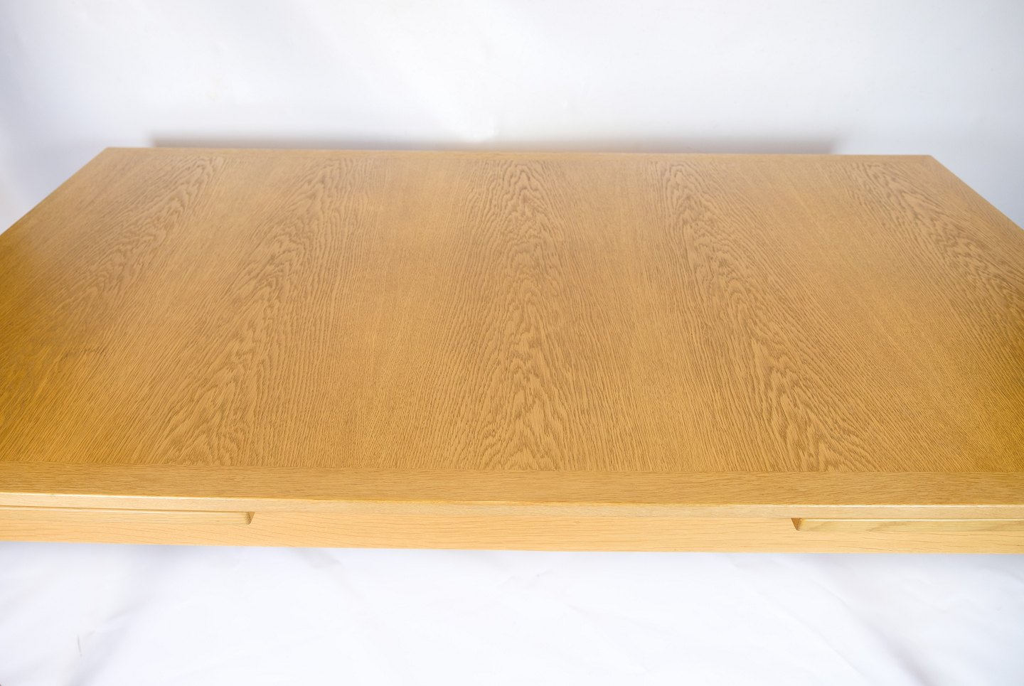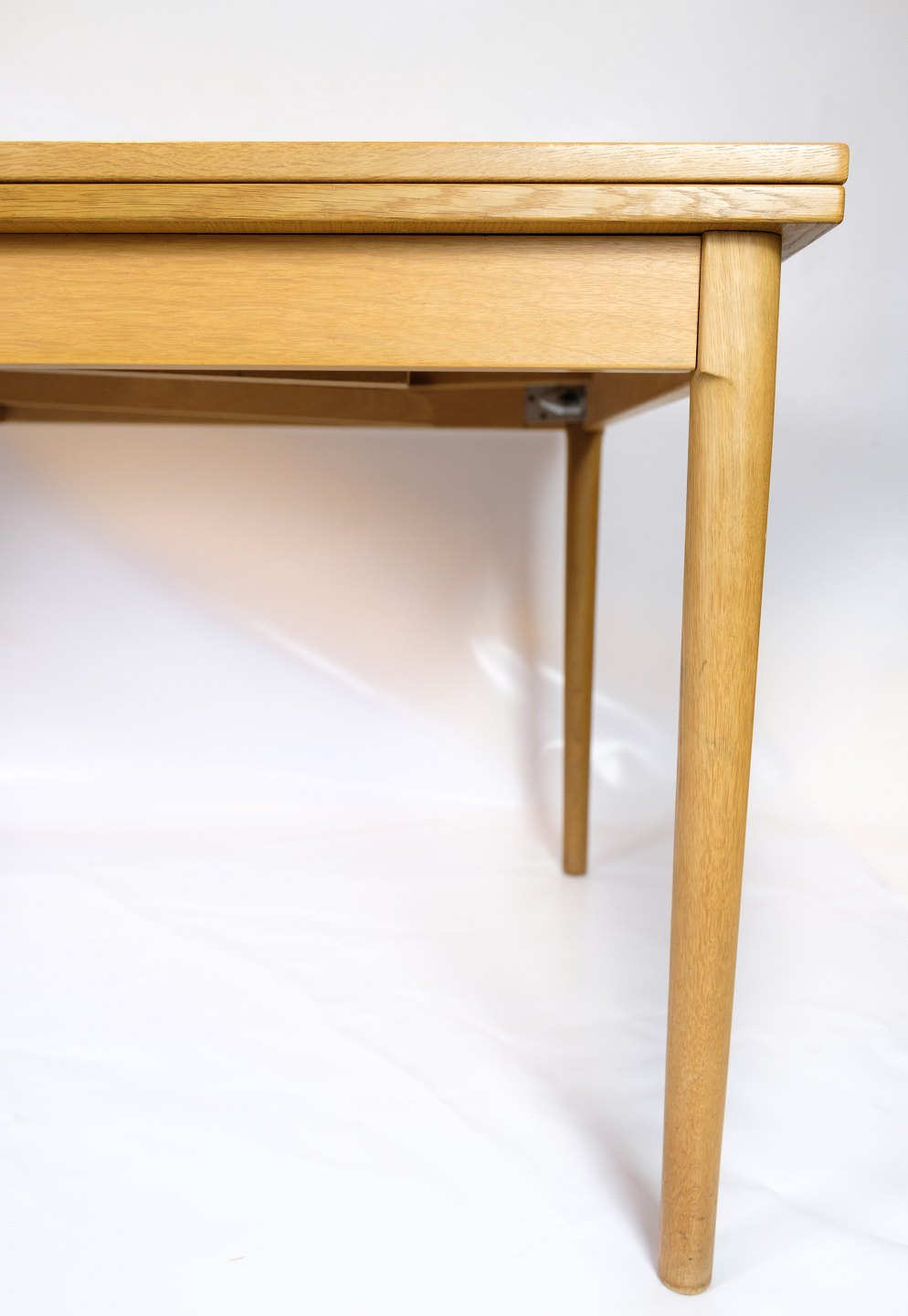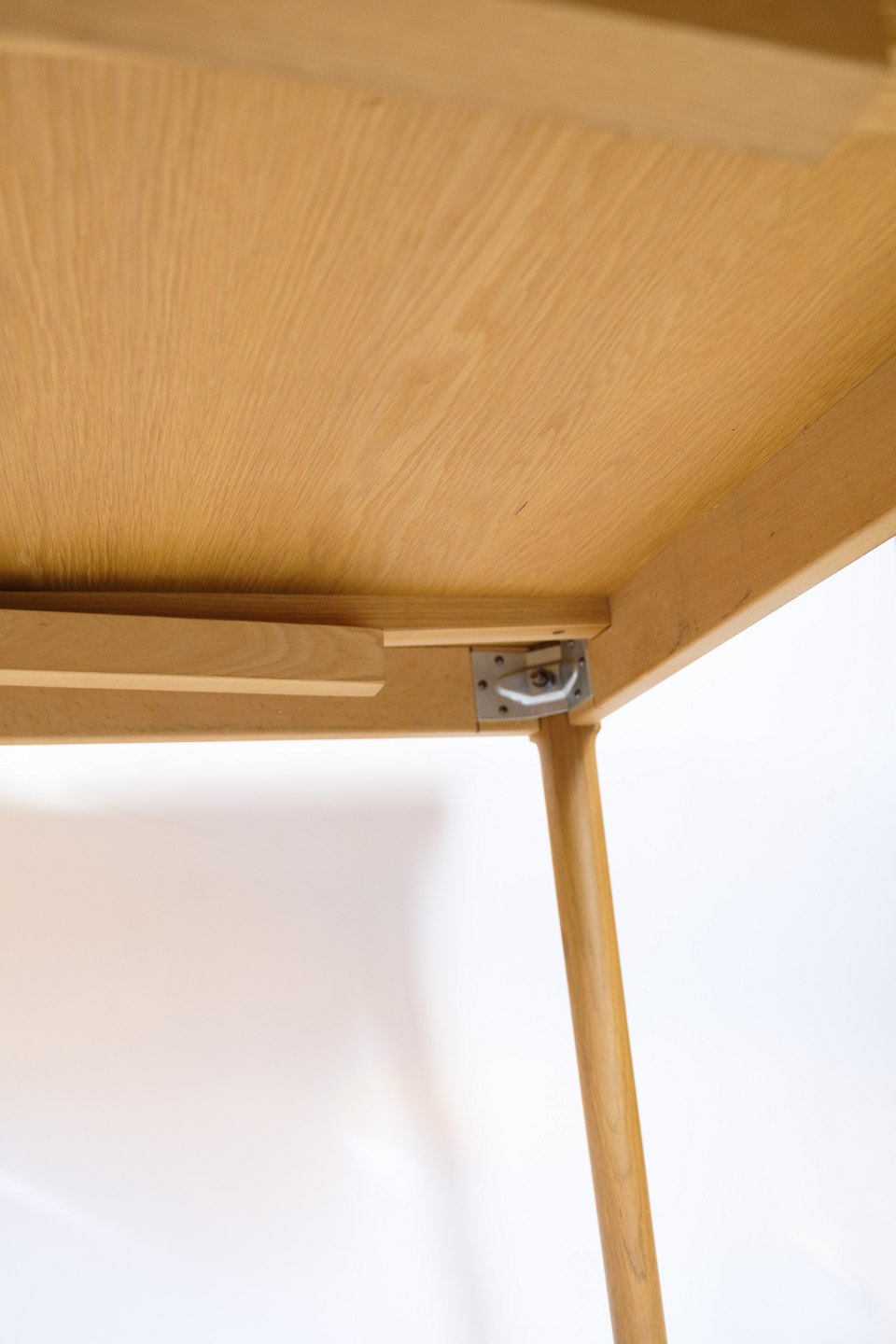 Spisebord med hollandsk udtræk, designet af Kaj Winding fremstillet i egetræ af Slagelse Møbelfabrik fra omkring 1960'erne.