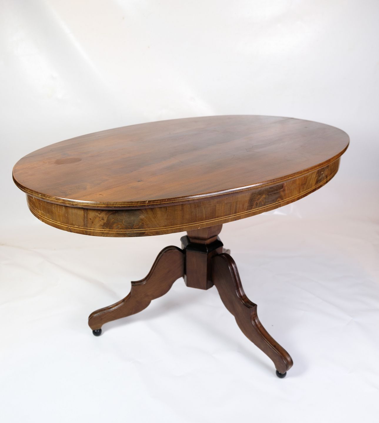 Round Late Empire mahogany dining table with 3 legs from around the 1840s.
