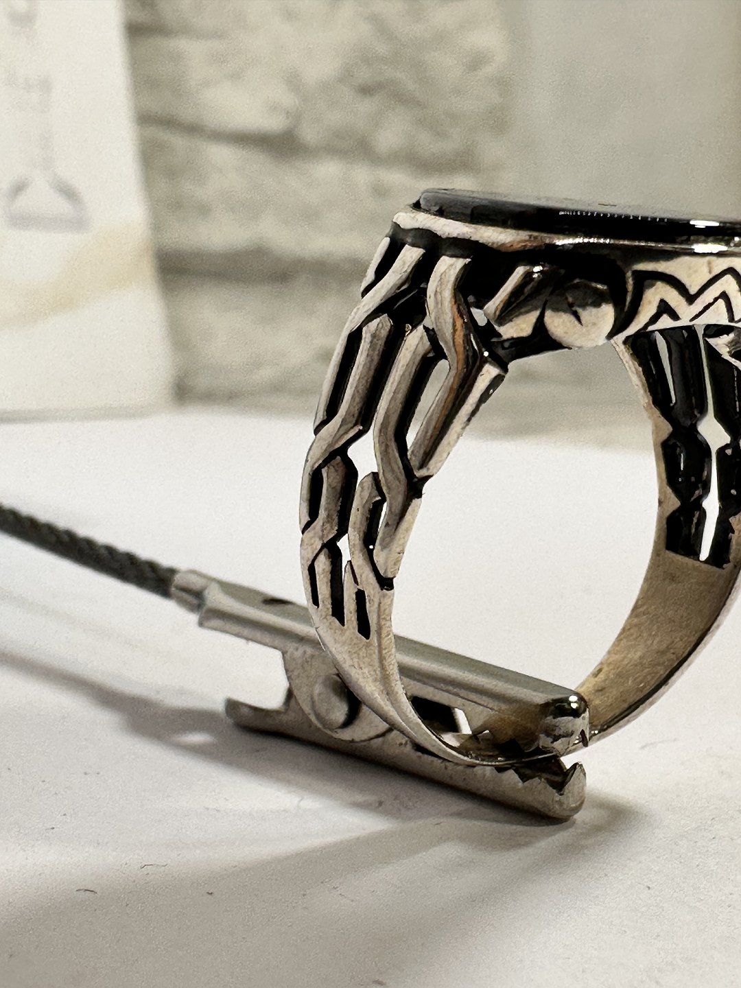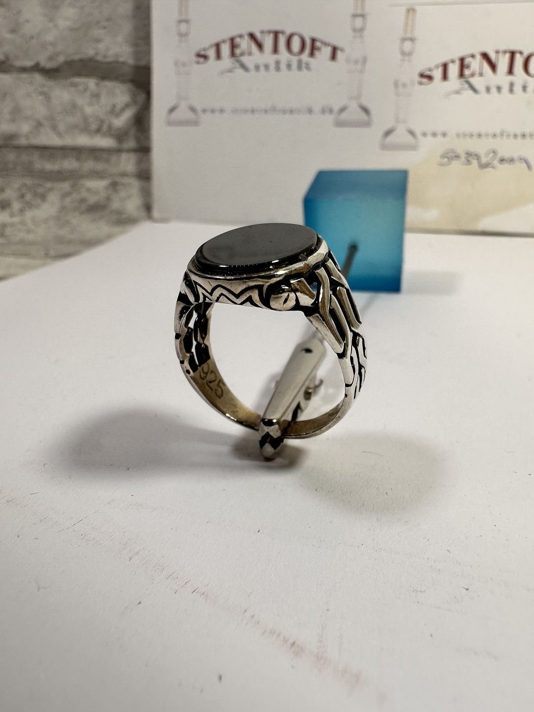 Sterling sølv herre ringe 925 s , sammen med store onyks rund sten . Str 64 .