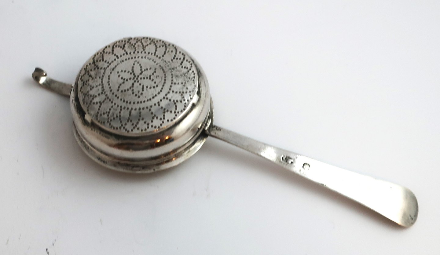 Dobbeltriflet. Sølv tesi (830). Forgyldt indvendig. Længde 16 cm.