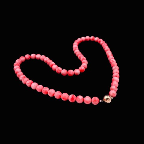 Koral halskæde med kuglelås i forgyldt sterling sølv.