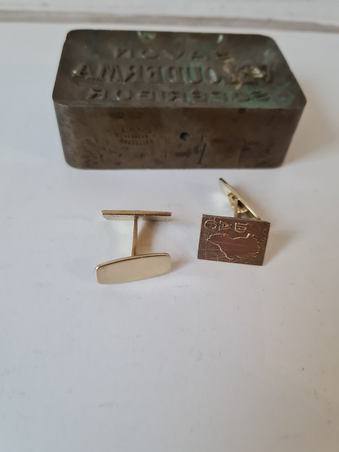 Par vintage manchetknapper i forgyldt sterlingsølv dekoreret med Grønland samt logo DAC