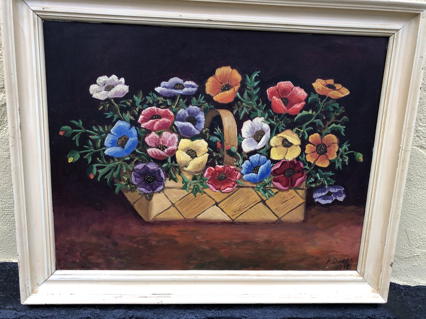 K. Dirach, blomstermaleri, oliemaleri på plade, Mål med ramme: 52x41 cm