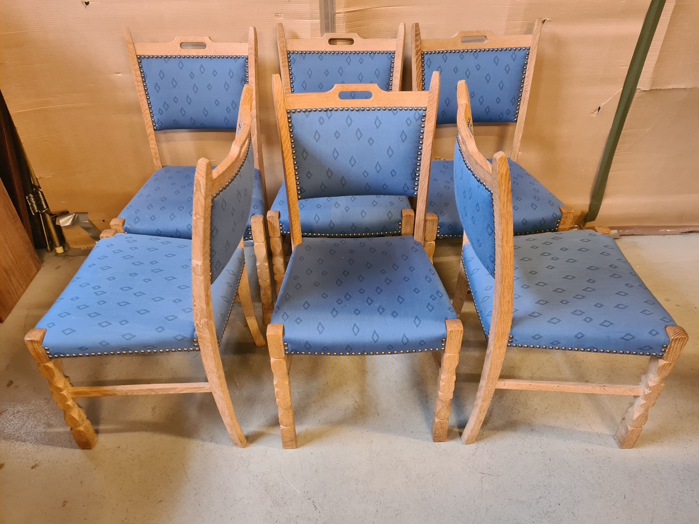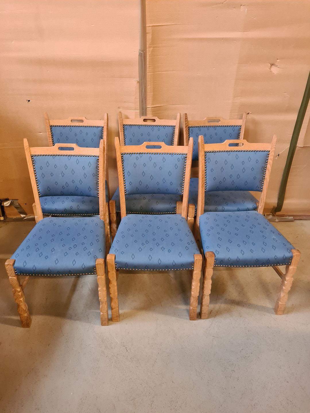 6 Stole i massivt egetræ, fra 1980erne.