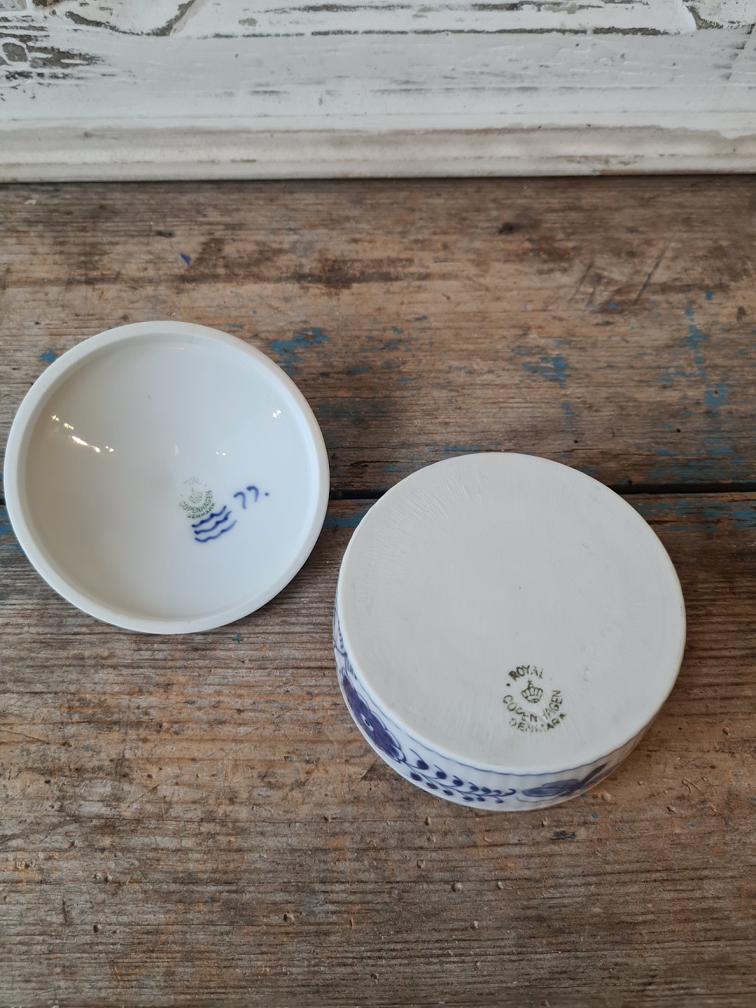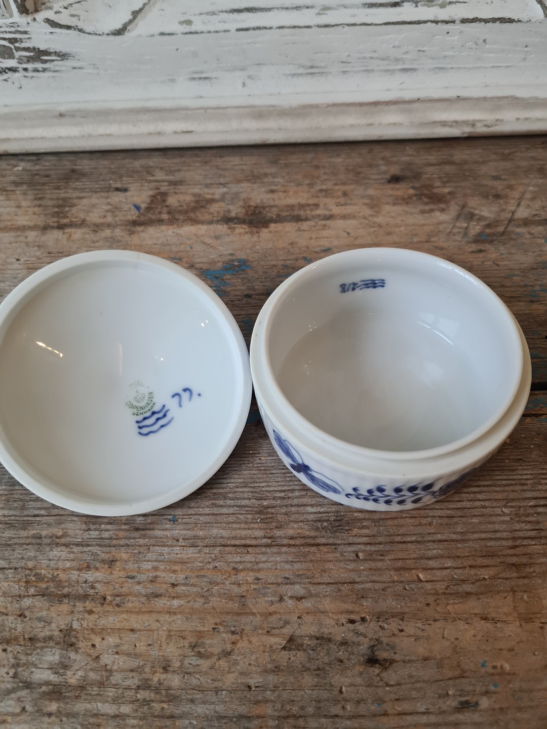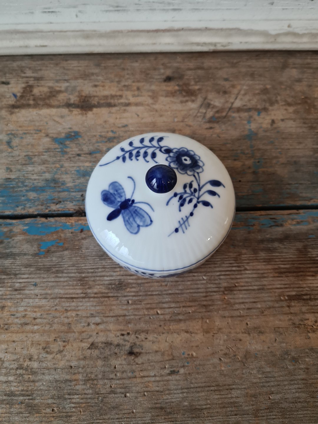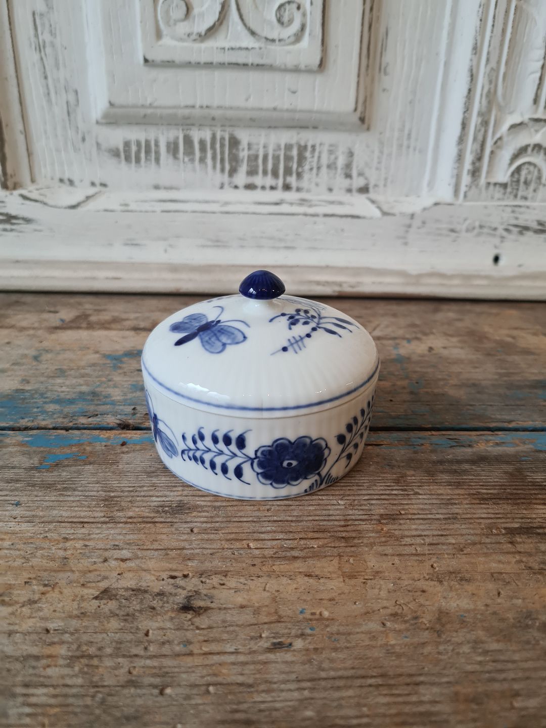 Royal Copenhagen Musselmalet bonbonniere dekoreret med sommerfugle