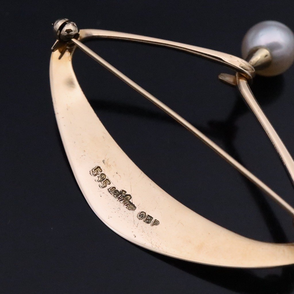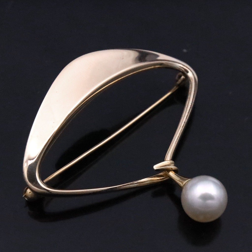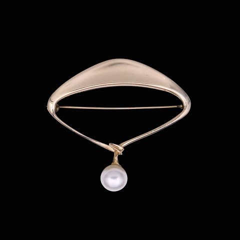 Ole Bent Petersen. Broche i 14k guld med perle.
