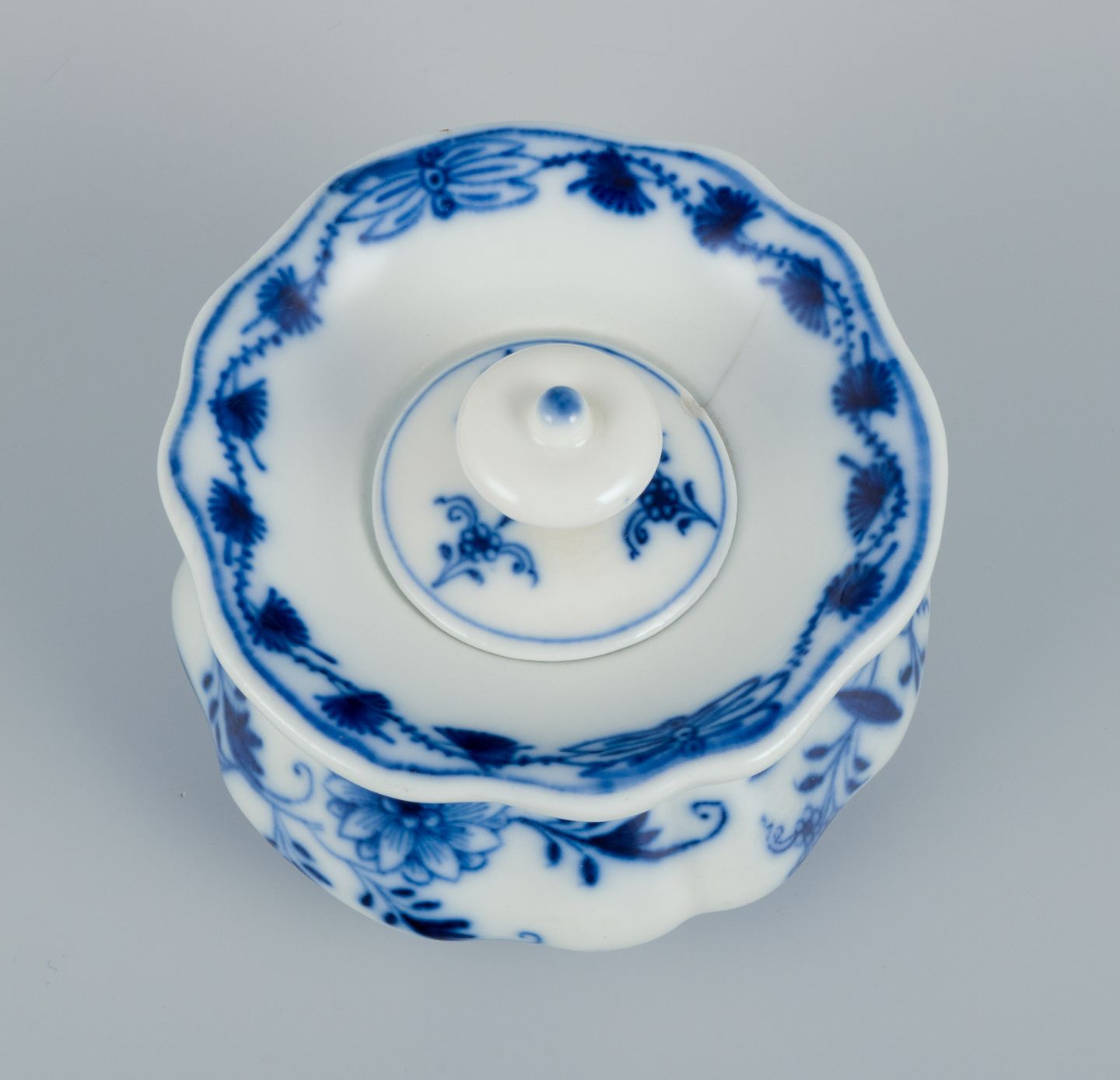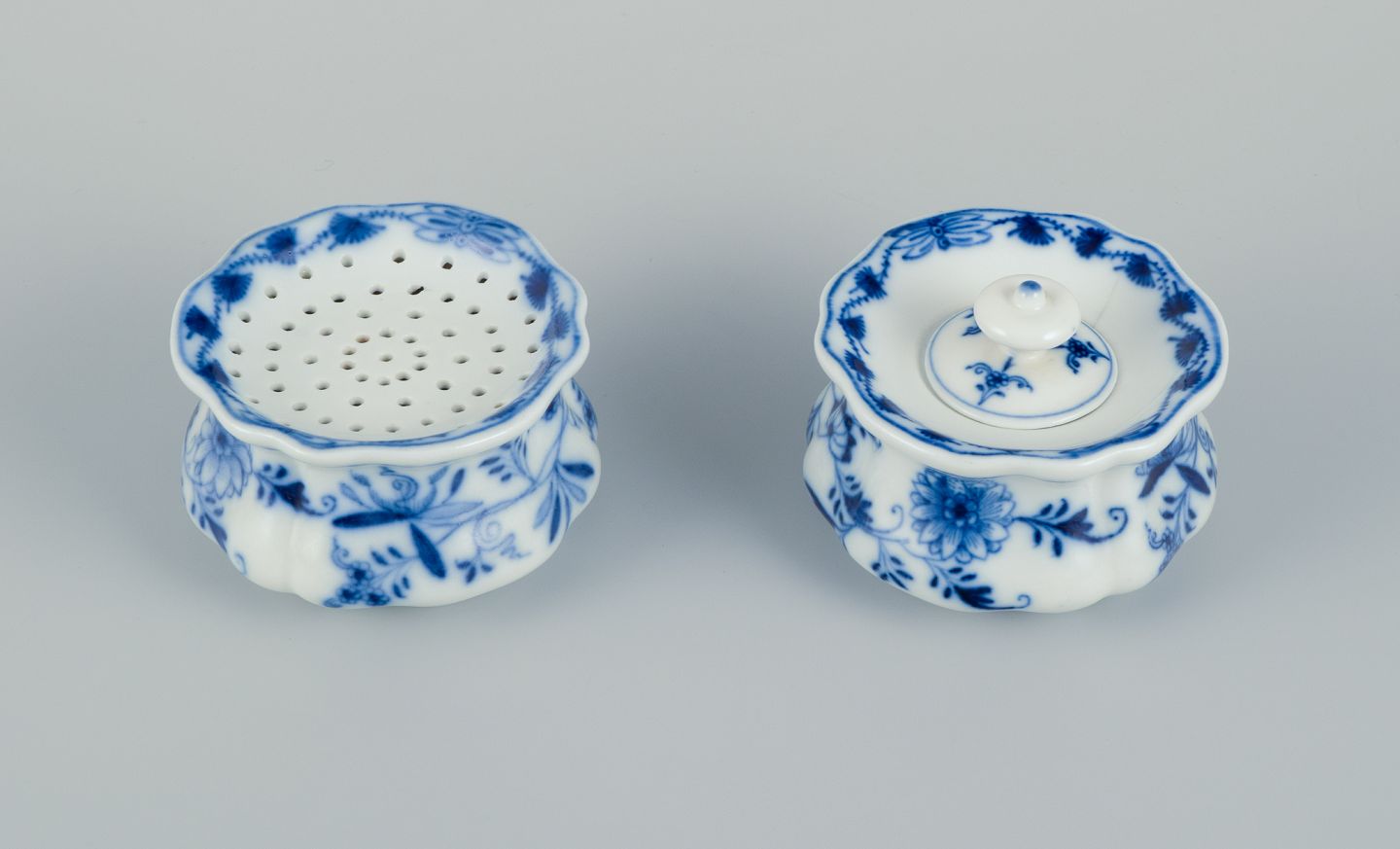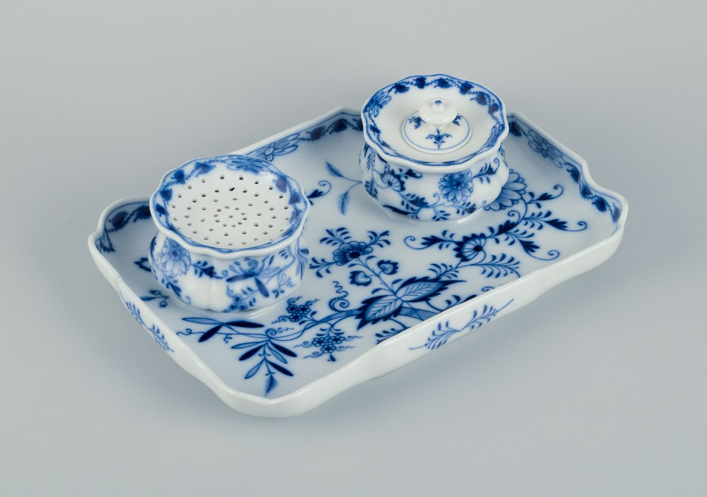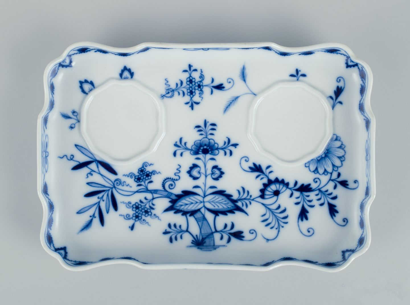 Text zugänglich auf Dänische: Meissen, Tyskland. Løgmønstret blækhus i porcelæn. Håndmalet.