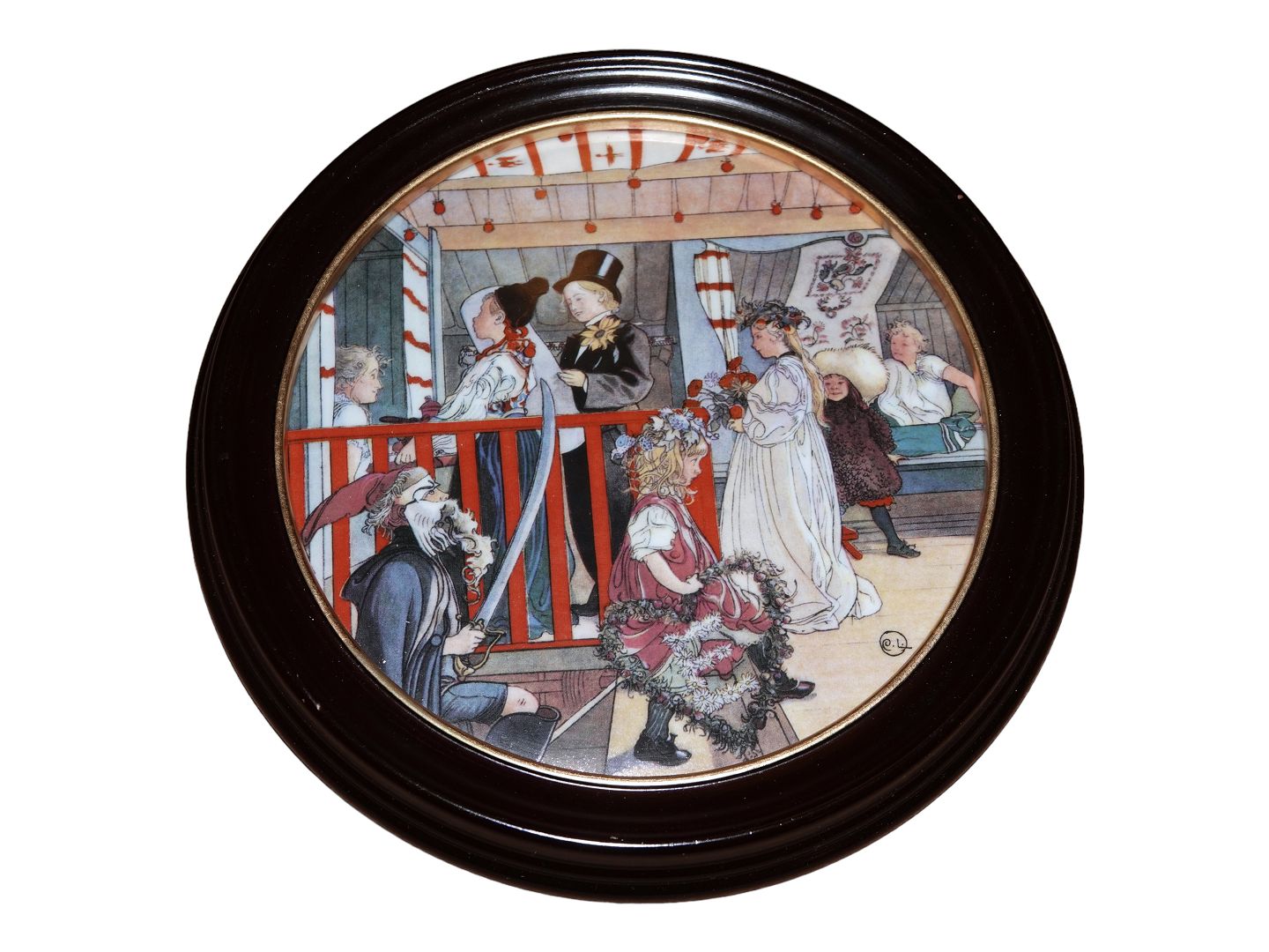 Royal Copenhagen Carl Larsson platte i mørk træramme, Navnedag.