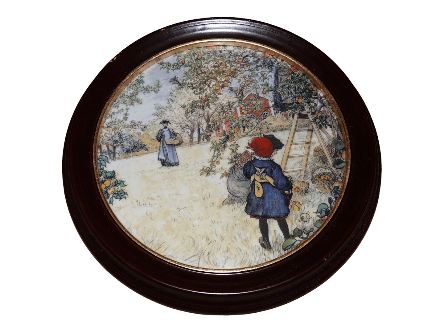 Royal Copenhagen Carl Larsson platte i mørk træramme, Mor og barn i æblegården.