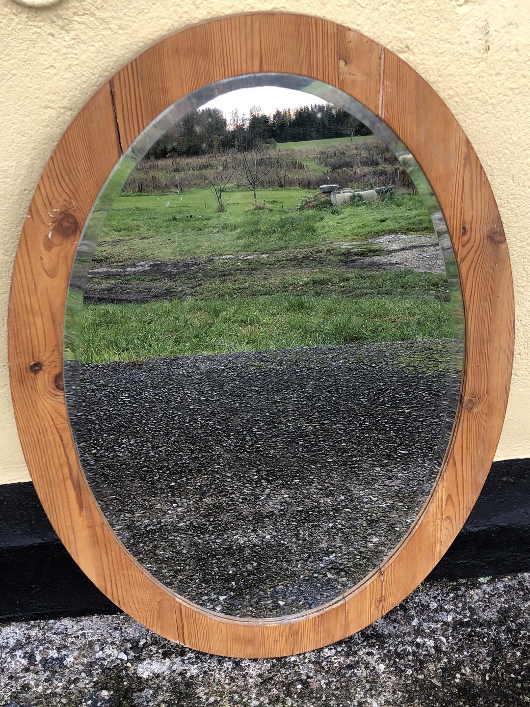 Ovalt spejl i fyrretræsramme, Mål: 88x62 cm