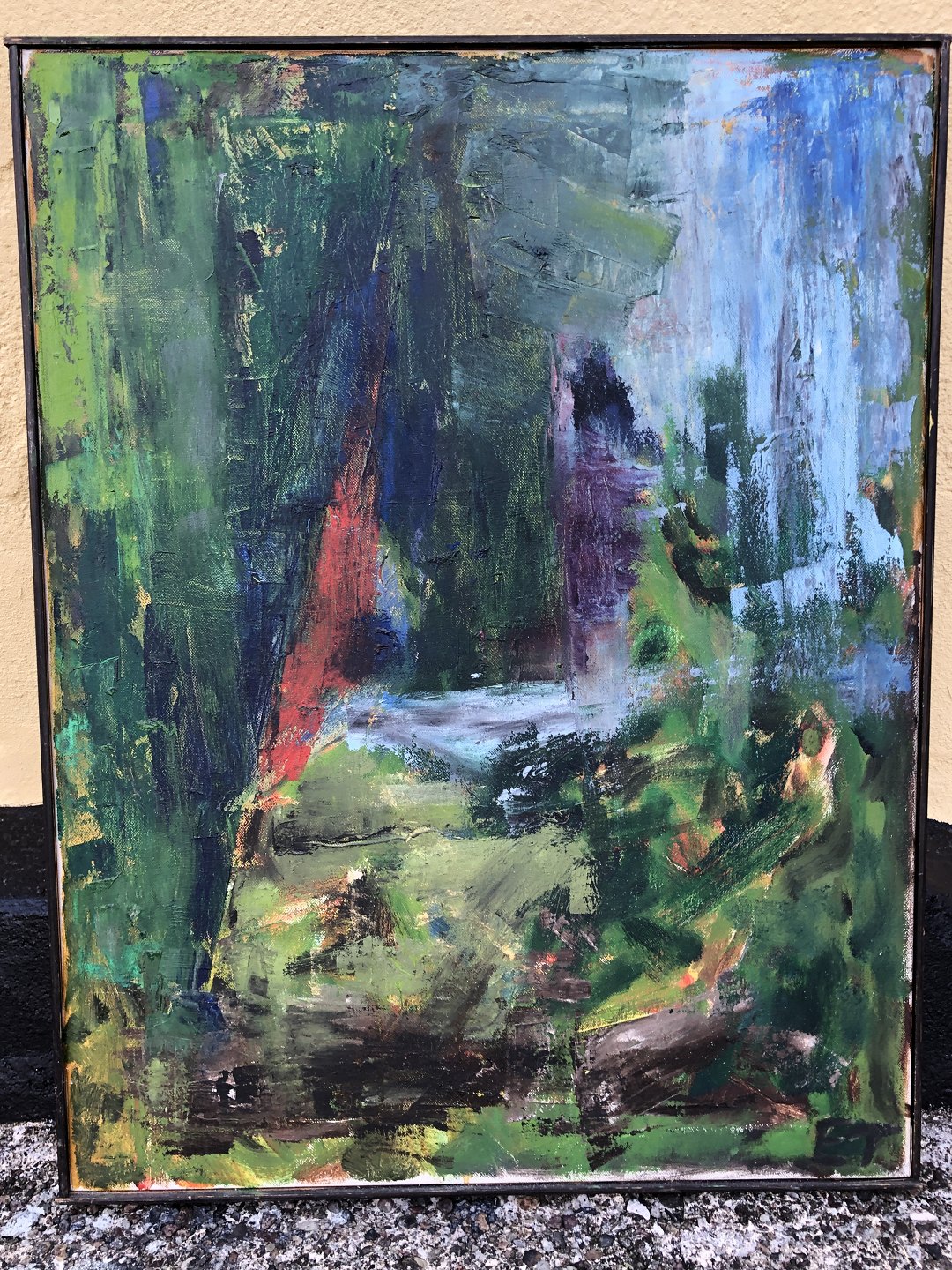 Edith Thrane abstrakt motiv fra Gurre Skov. Mål 66x51 cm
