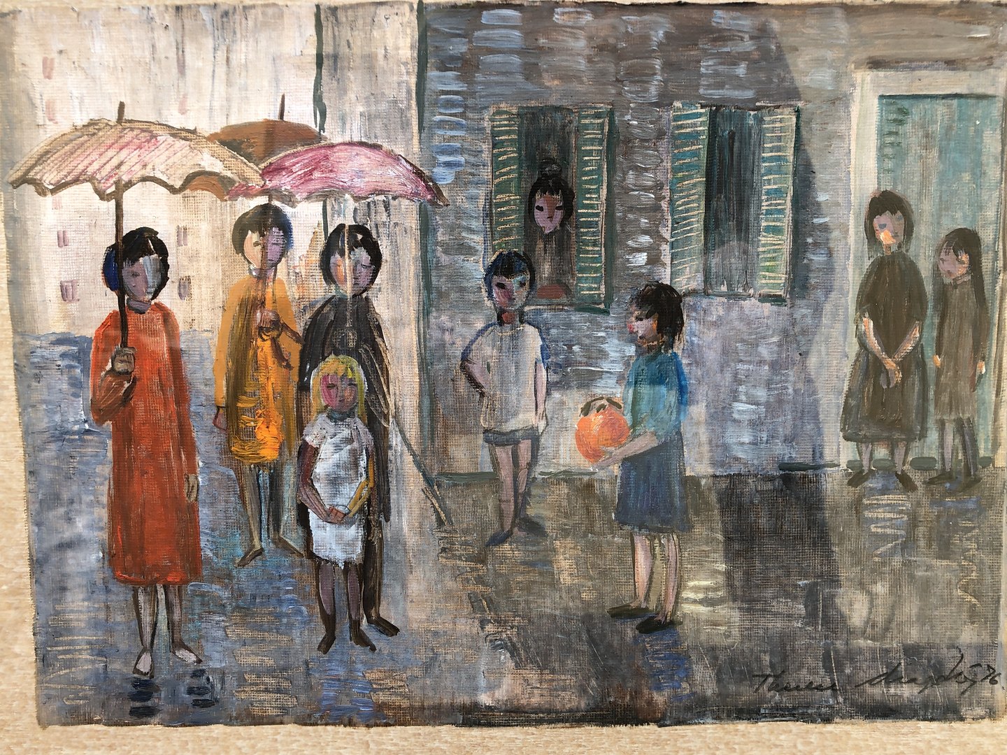 Therese Dragshøj 76 (1909-1998), The picture itself is in fine condition but the Passepartout frame has some stains/discoloration, Dimensions: 27.5x39.5, with frame: 54x43.5cm.