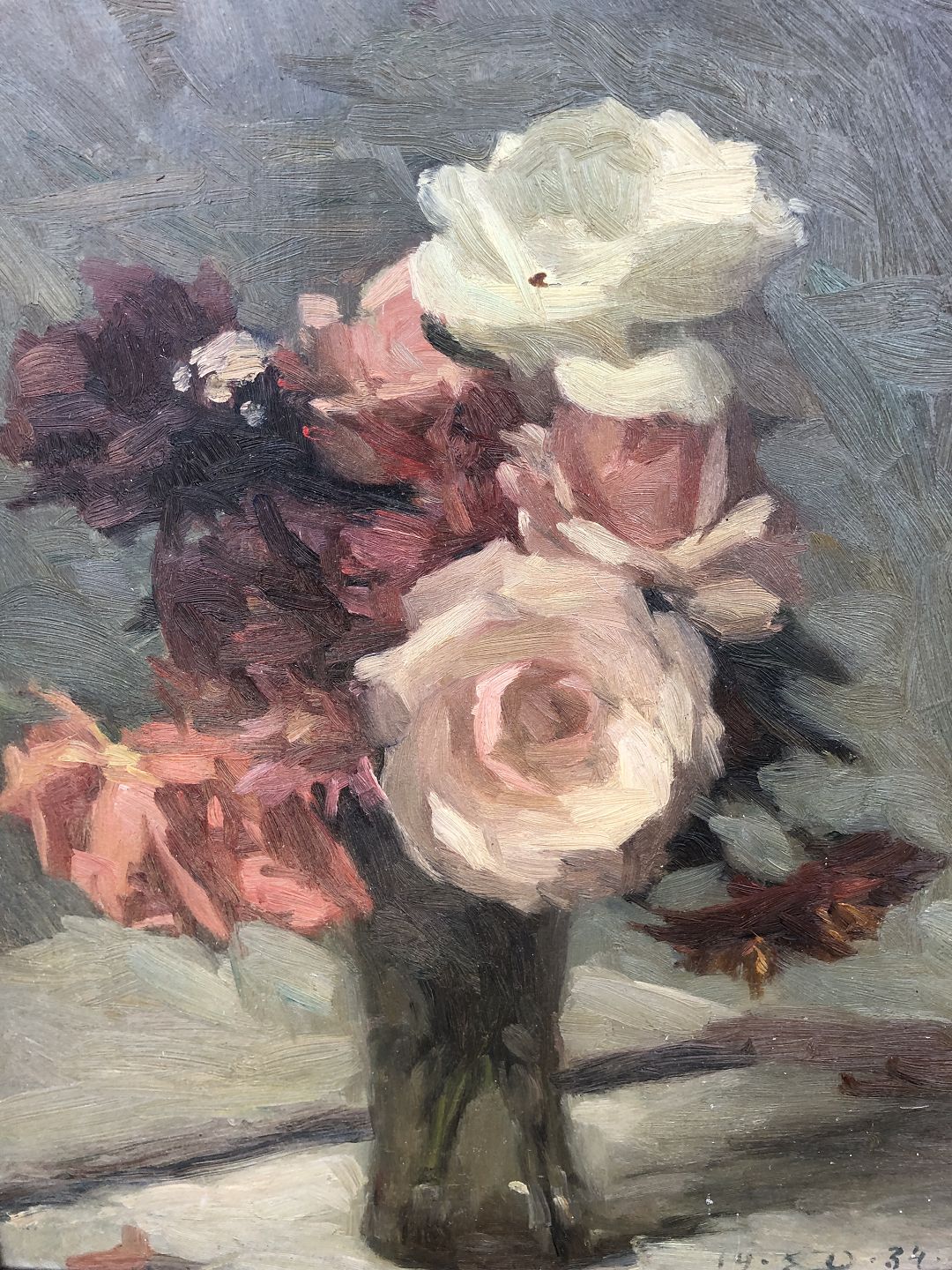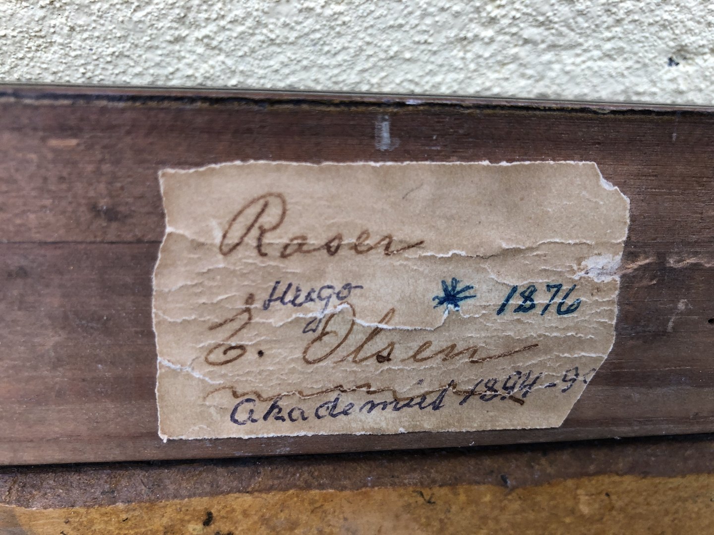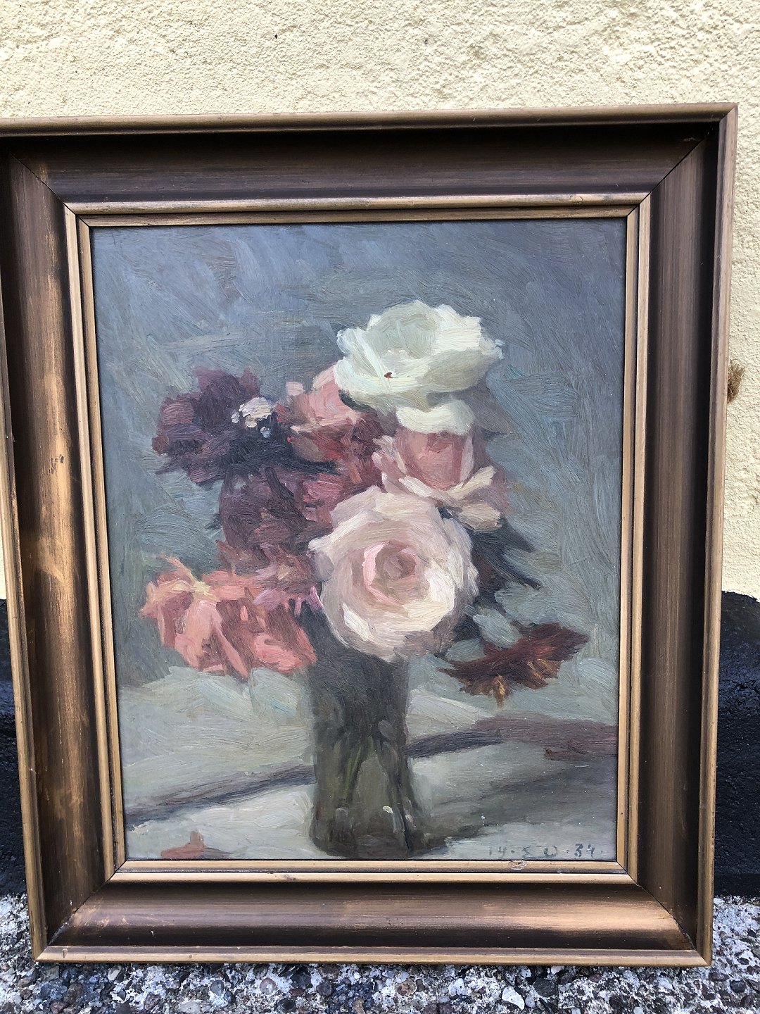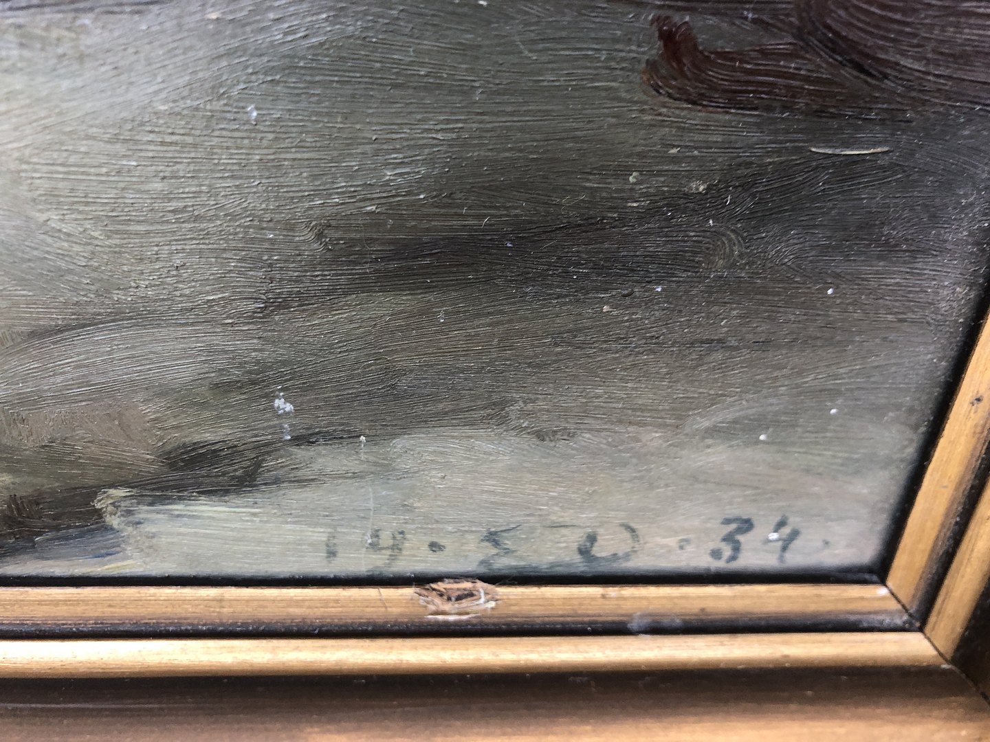Einar Hugo Olsen (1876-1950), Oliemaleri på plade, E. Olsen var Uddannet på kunstakademiet i København 1894-99. Tilhørte Dyrehavens malere. Mål med ramme 50x42 cm, Signeret: 19 E. O. 34