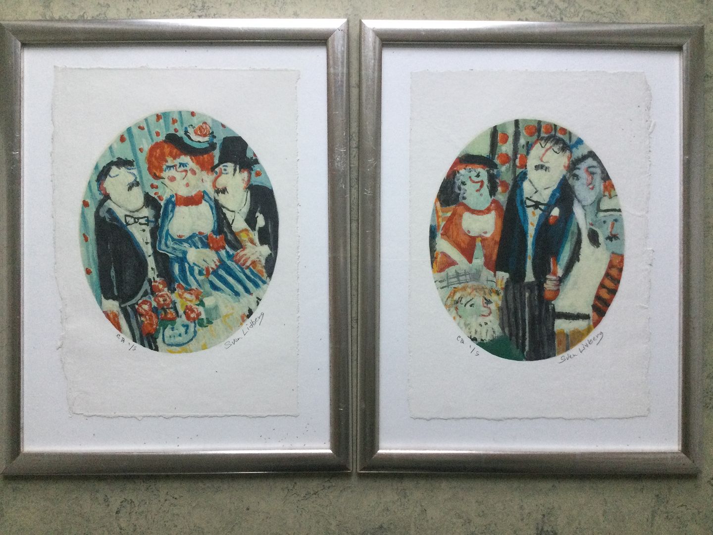 2 litografier af Sven Lidberg - motiver fra festligt lag.