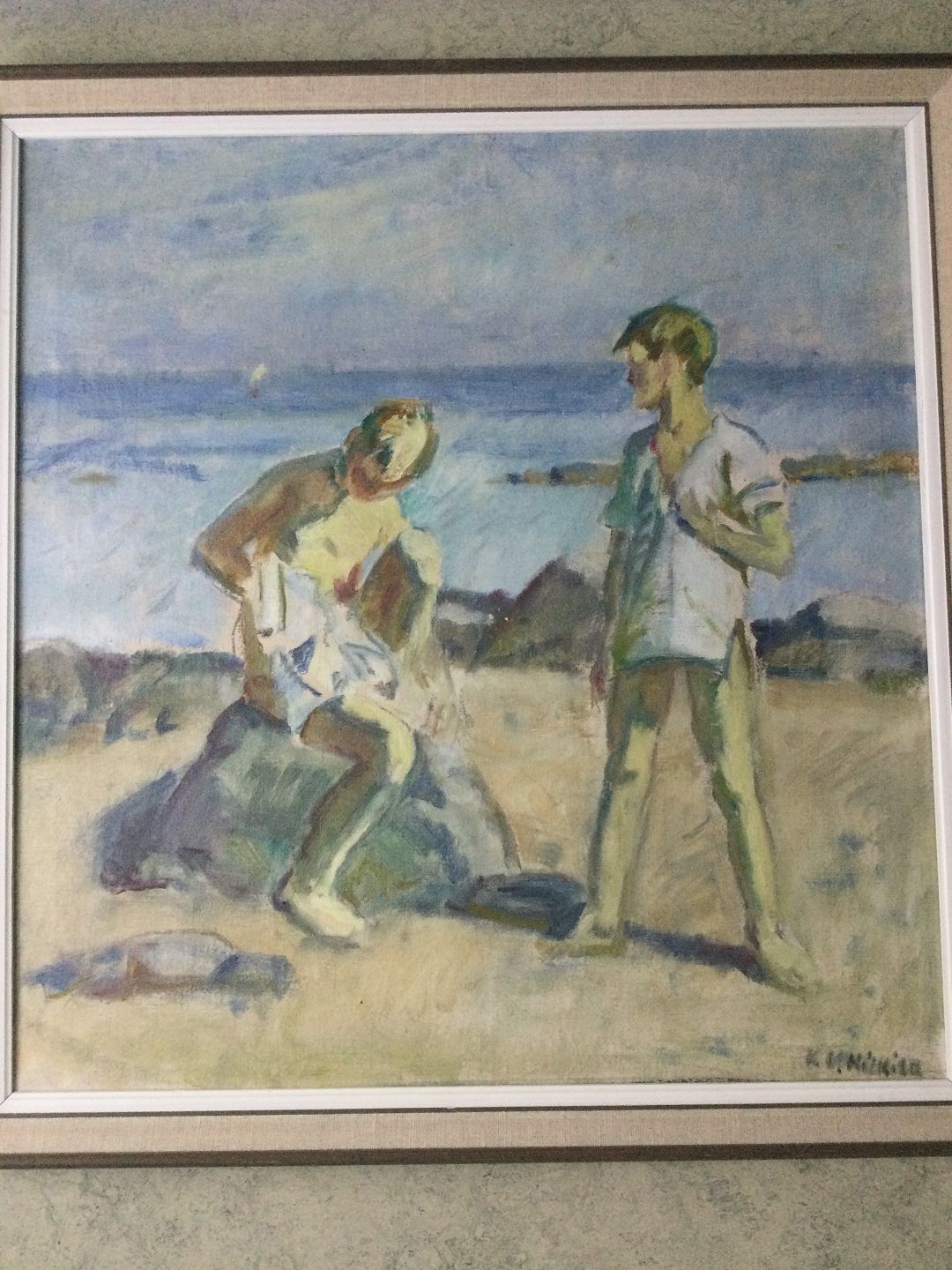 Maleri - K.O. Hilkier - Parti med badende drenge.