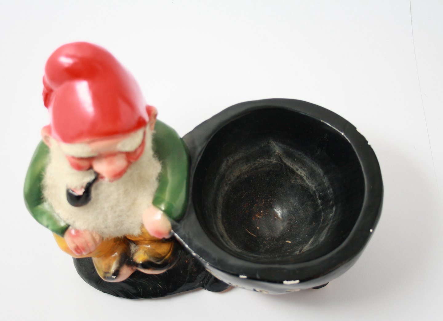 Figur-kunst Hauketo, Norway, Nisse med God jul skål, nissen har glasøjne og en form for krøluld skæg og øjenbryn. Rigtig hyggelig nisse fra 1960'erne. Højde 19 cm. Længde 23 cm. God stand med enkelte glasurafskalninger. Pris: 700 kr.