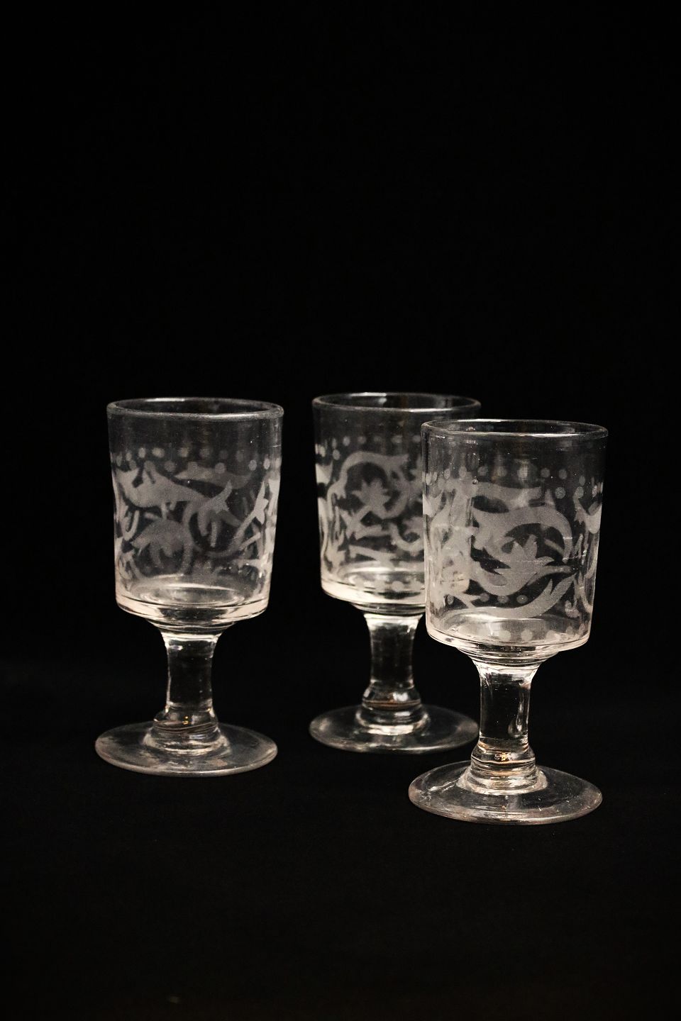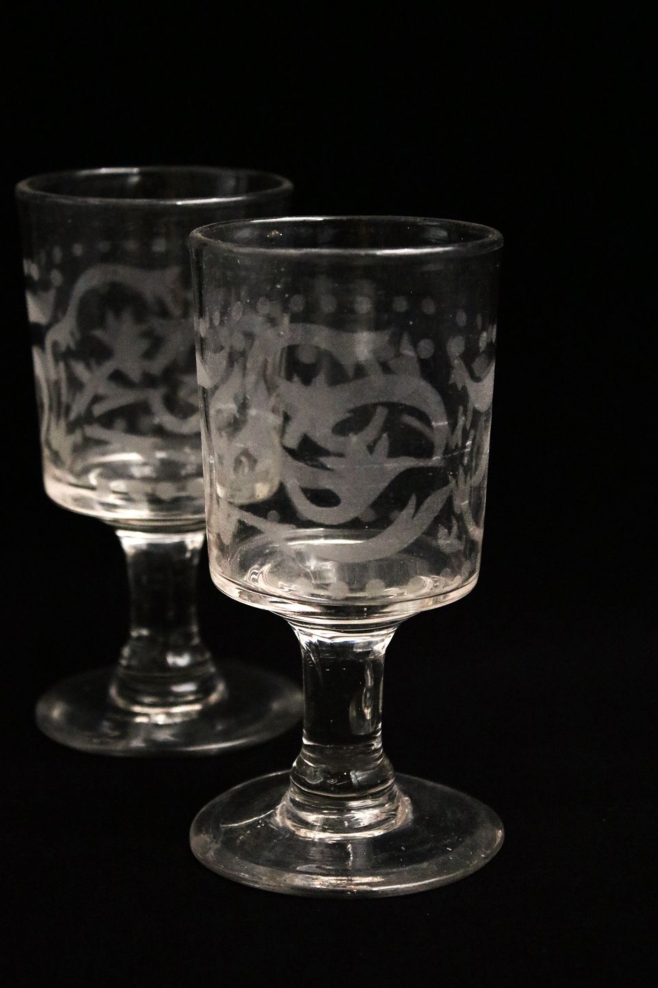 Antikke , 1800 tals mundblæste franske vin glas med blomster slibninger...