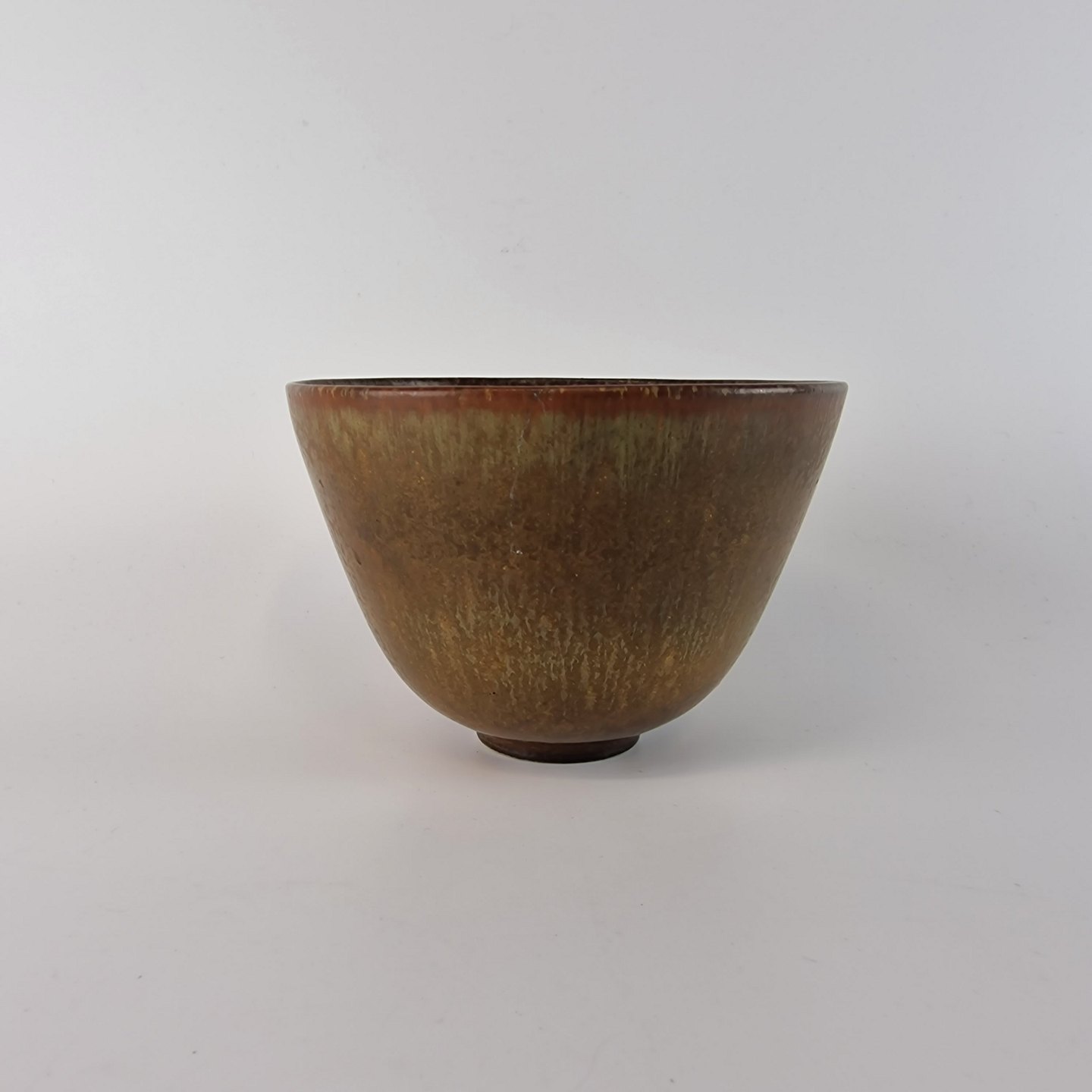 Skål med bølgende kant. Af keramik med brunlig glasur