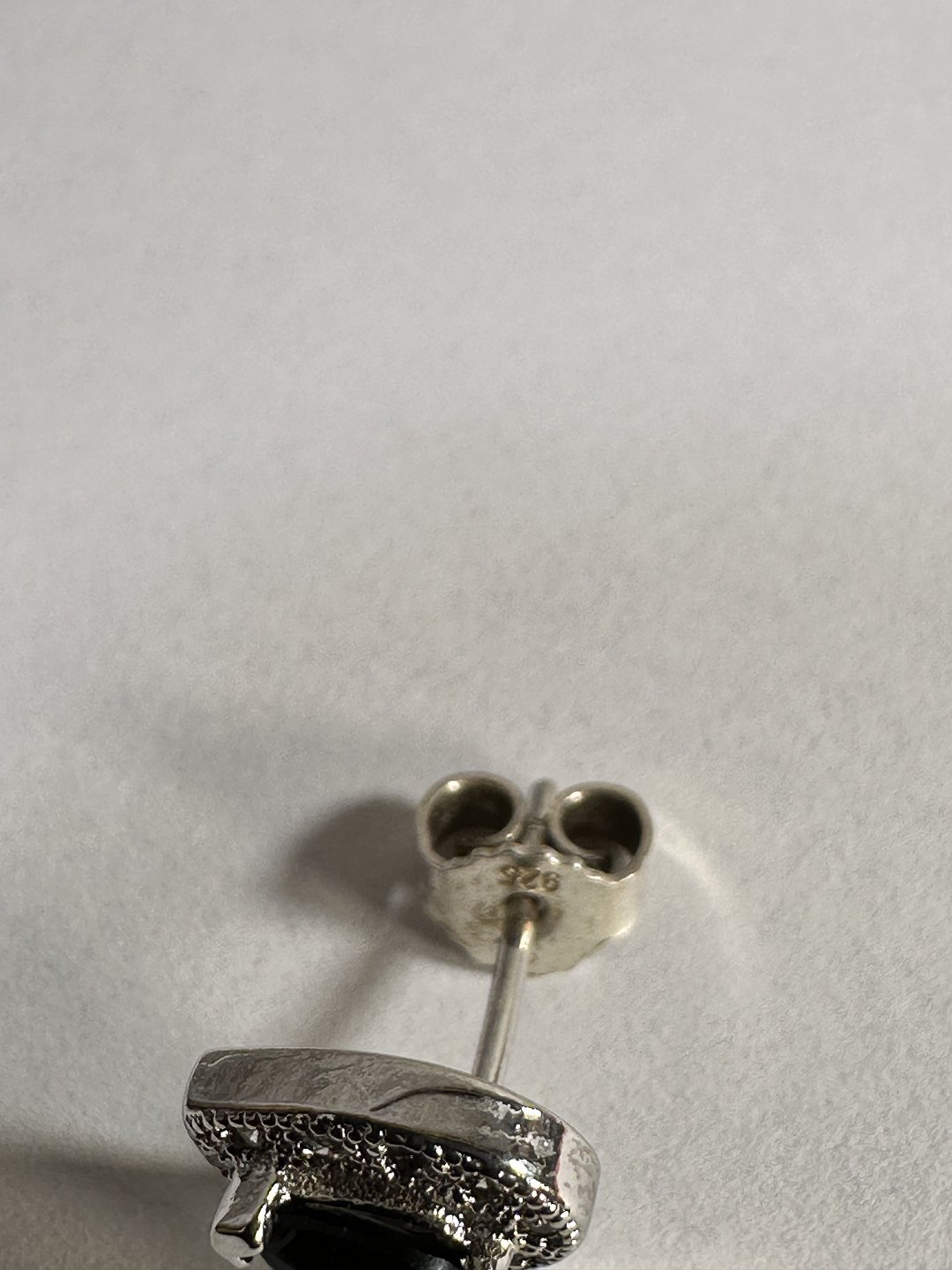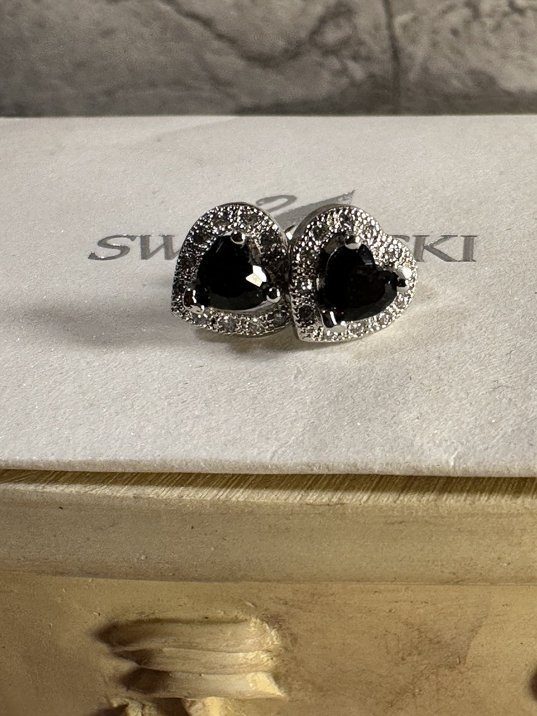 heart shaped earrings. centered with Blue heart-shaped crystal, surrounded by numerous small Brilliant-shaped crystals.