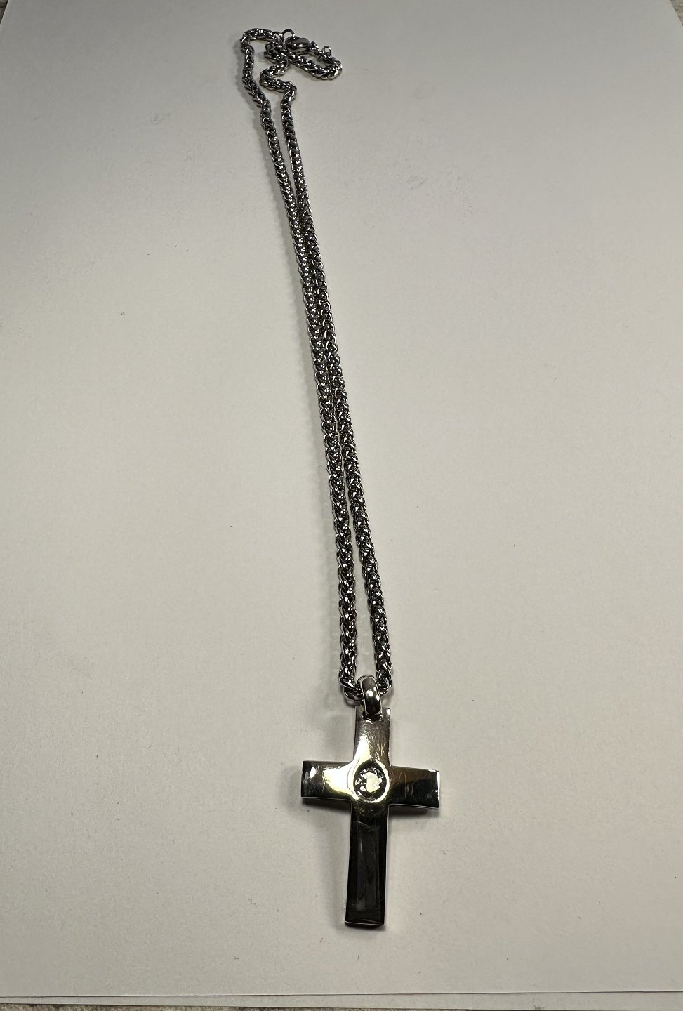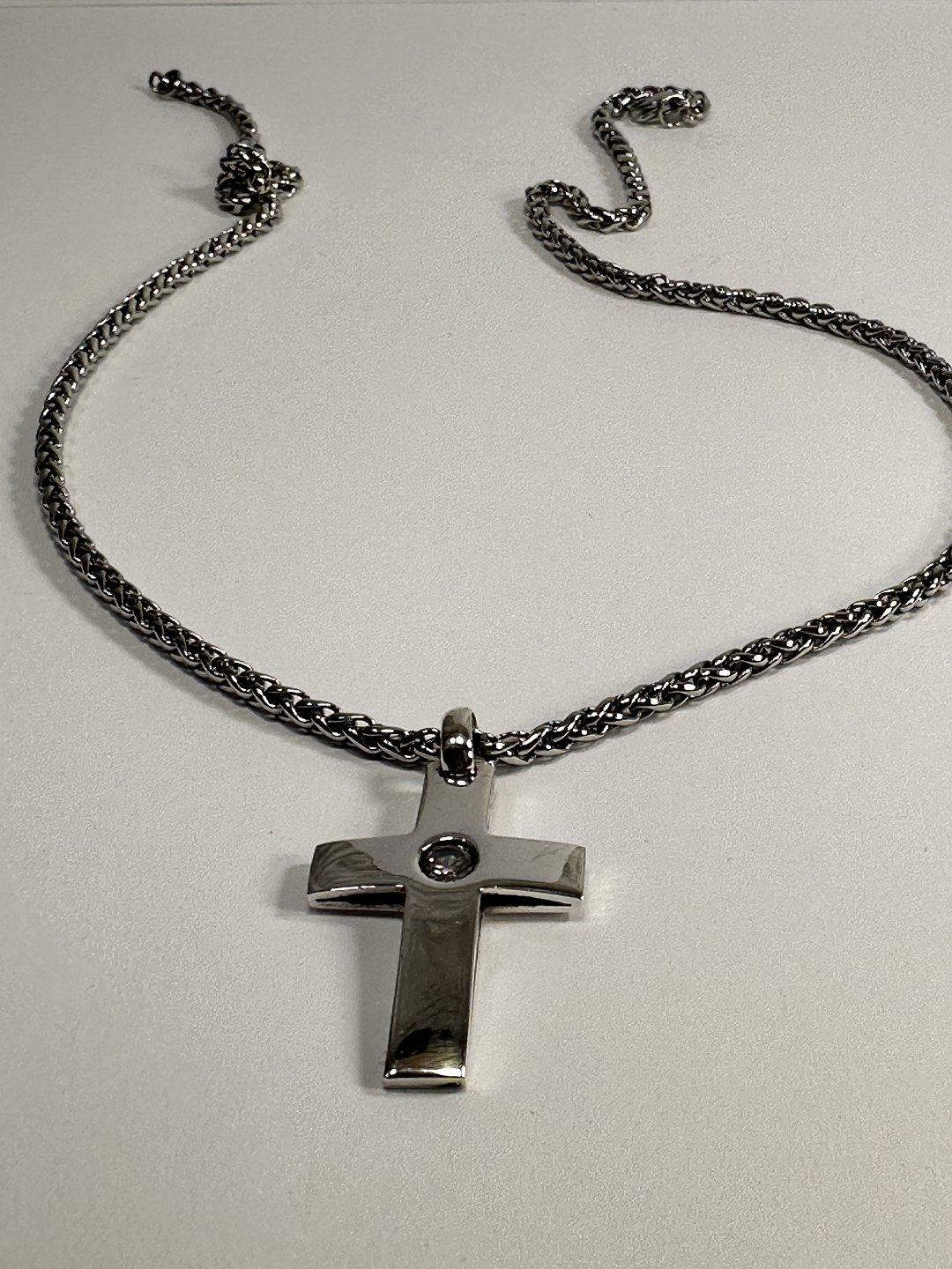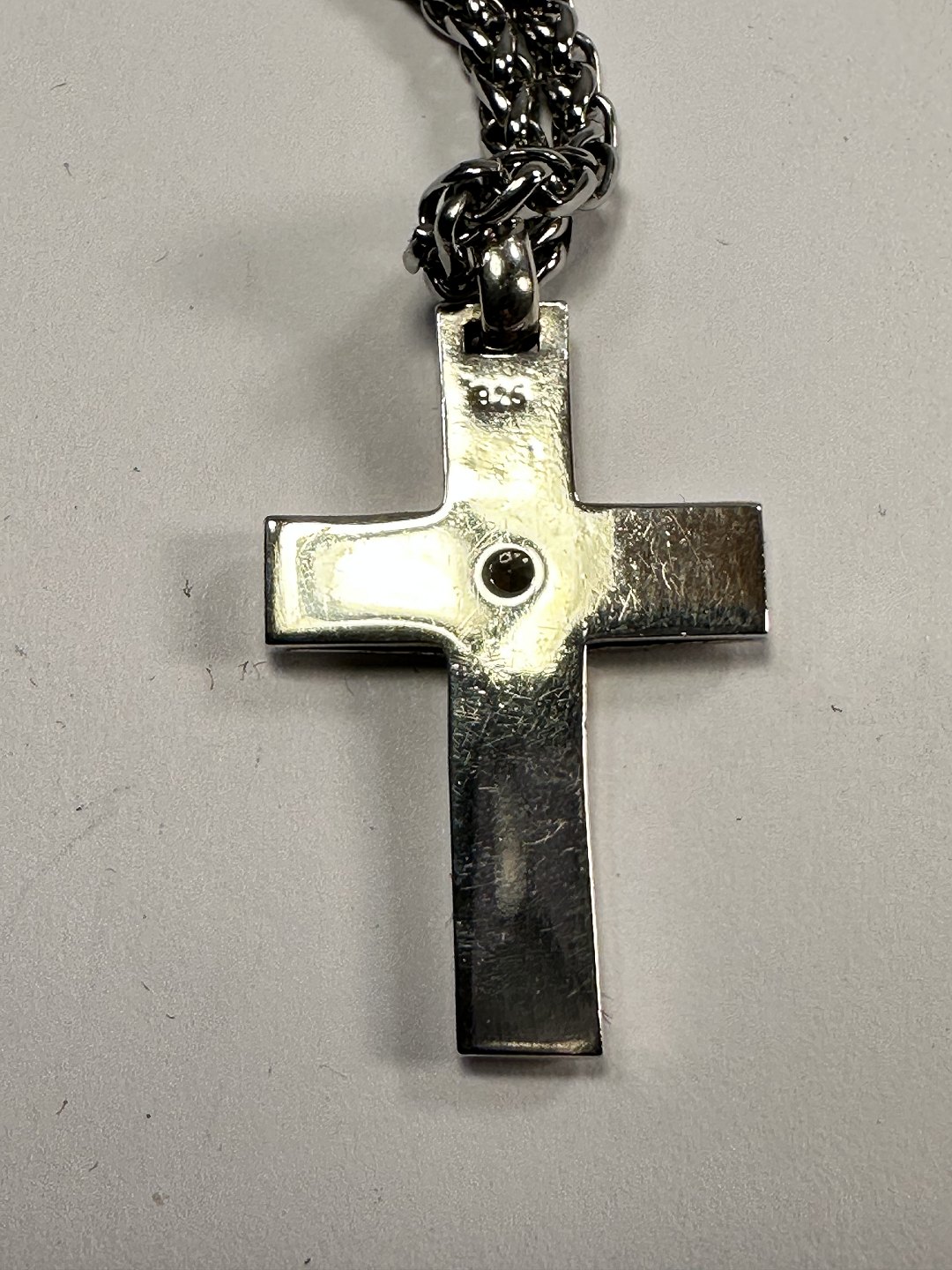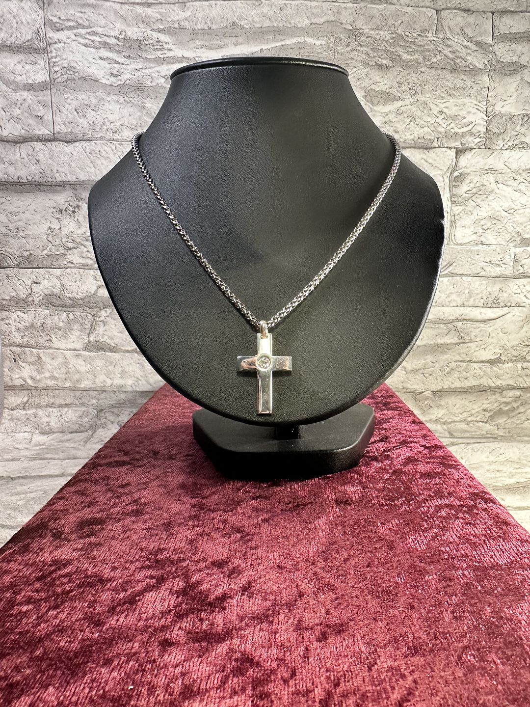 Sterling silver unique necklace together with unique cross in silver 925s, cross has a large zircon stone. L chain 36 cm cross 3 cm. beautiful and in good condition